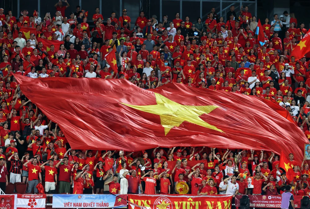 Fans Việt Nam phủ kín khán đài A sân Rajamangala. Ảnh: ANH PHƯƠNG.