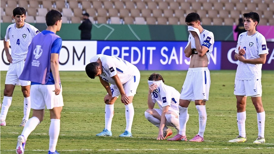 Các cầu thủ Uzbekistan thất vọng sau trận thua Trung Quốc. ẢNH: AFC