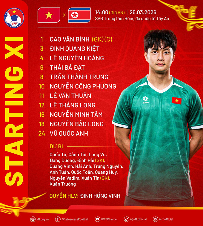 Đội hình xuất phát của U-23 Việt Nam trận hòa 1-1 với U-23 Triều Tiên.