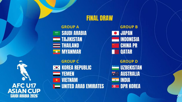 Theo đó, giải đấu dự kiến tổ chức từ ngày 7 đến 24/5/2026 với sự tham dự của 16 đội tuyển. Theo kết quả bốc thăm, U17 Việt Nam rơi vào bảng C cùng Hàn Quốc, UAE và Yemen - bảng đấu được đánh giá có tính cạnh tranh cao.