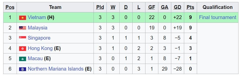 Ở trận đấu cùng giờ, U17 Malaysia đè bẹp U17 Macao (Trung Quốc) 5-0 để bám sát U17 Việt Nam. Sau 3 lượt trận, U17 Việt Nam đứng đầu khi ghi tới 22 bàn và chưa để thủng lưới, còn U17 Malaysia xếp sau với hiệu số +19.
