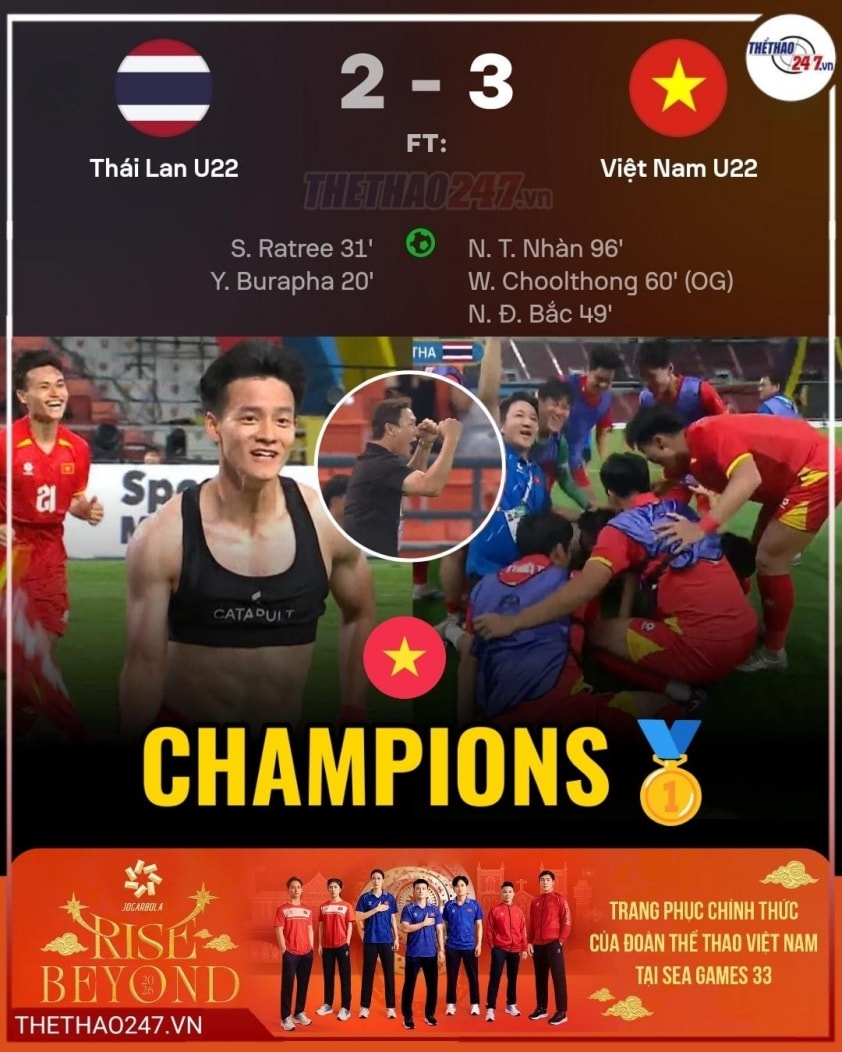 Trận chung kết bóng đá nam SEA Games 33 đã chứng kiến hai bộ mặt hoàn toàn trái ngược của U22 Thái Lan. Trong hiệp một, họ kiểm soát hoàn toàn thế trận và vươn lên dẫn trước 2-0 nhờ các pha lập công của Yotsakorn Burapha và Seksan Ratree. Tuy nhiên, bản lĩnh của U22 Việt Nam đã được khẳng định đúng lúc trong hiệp hai.