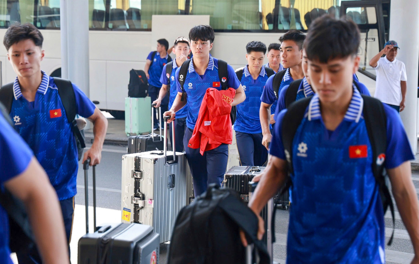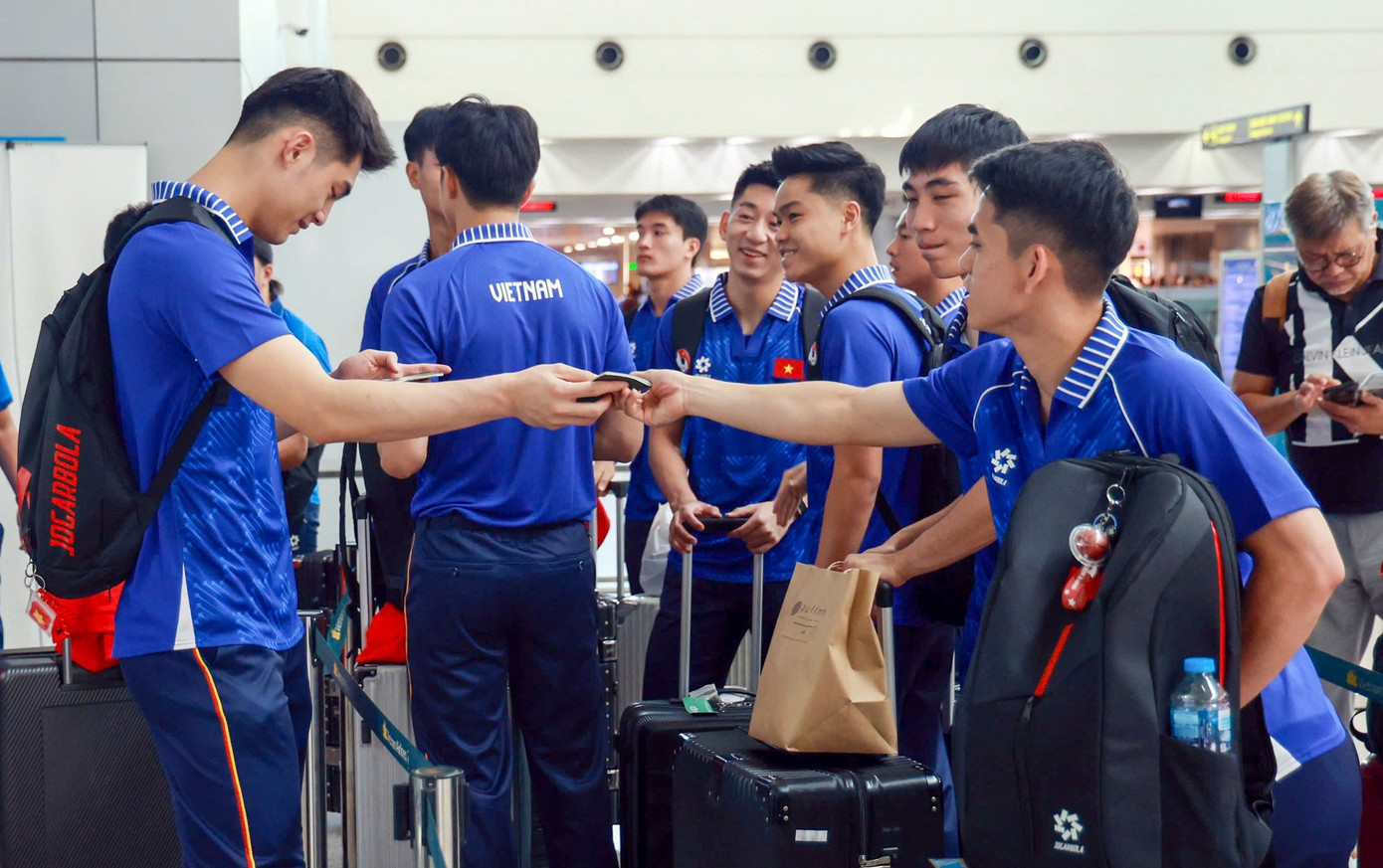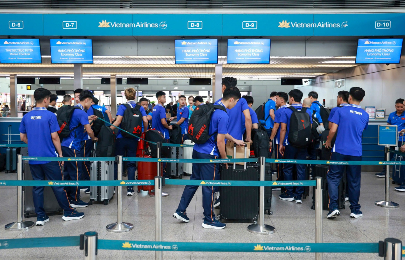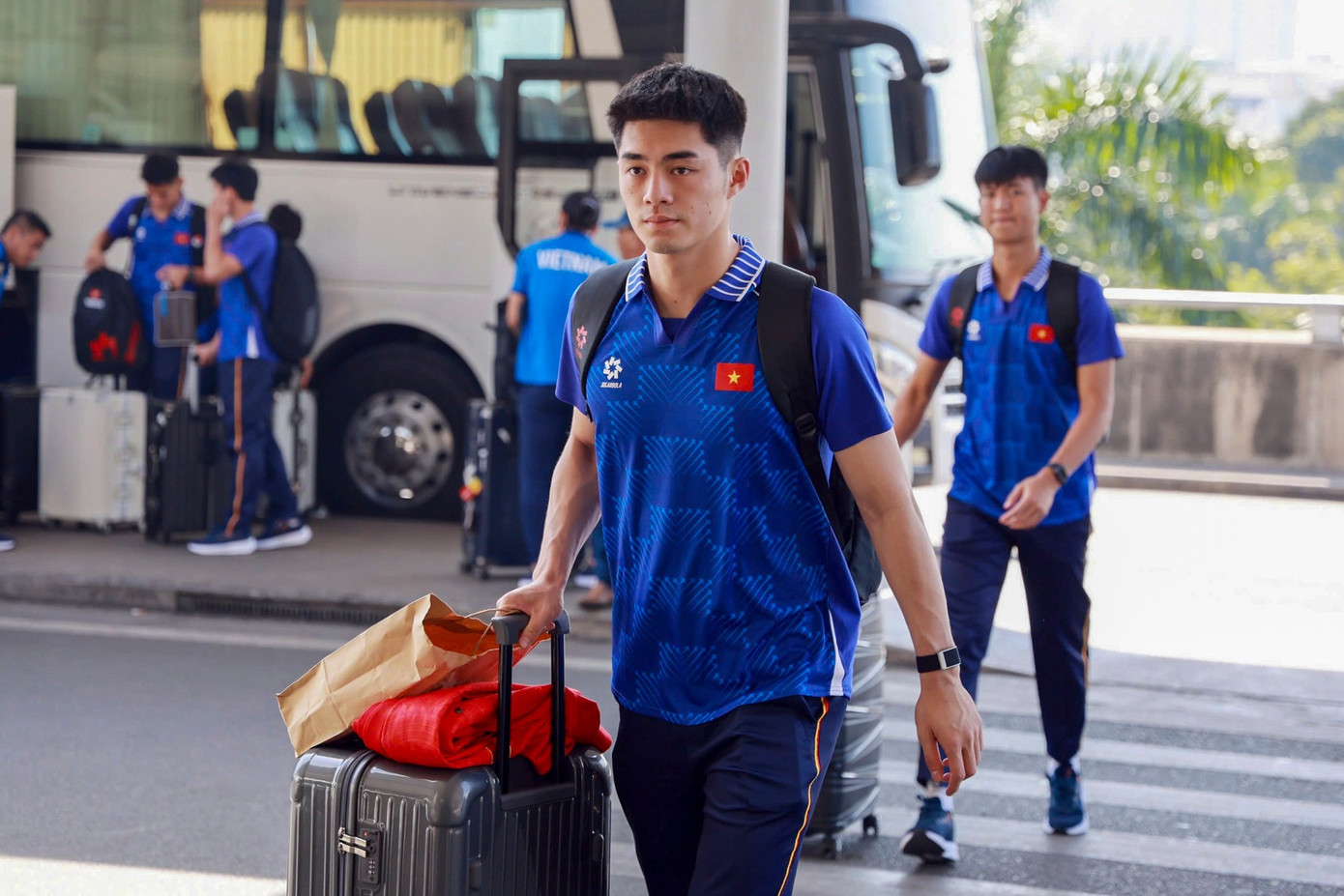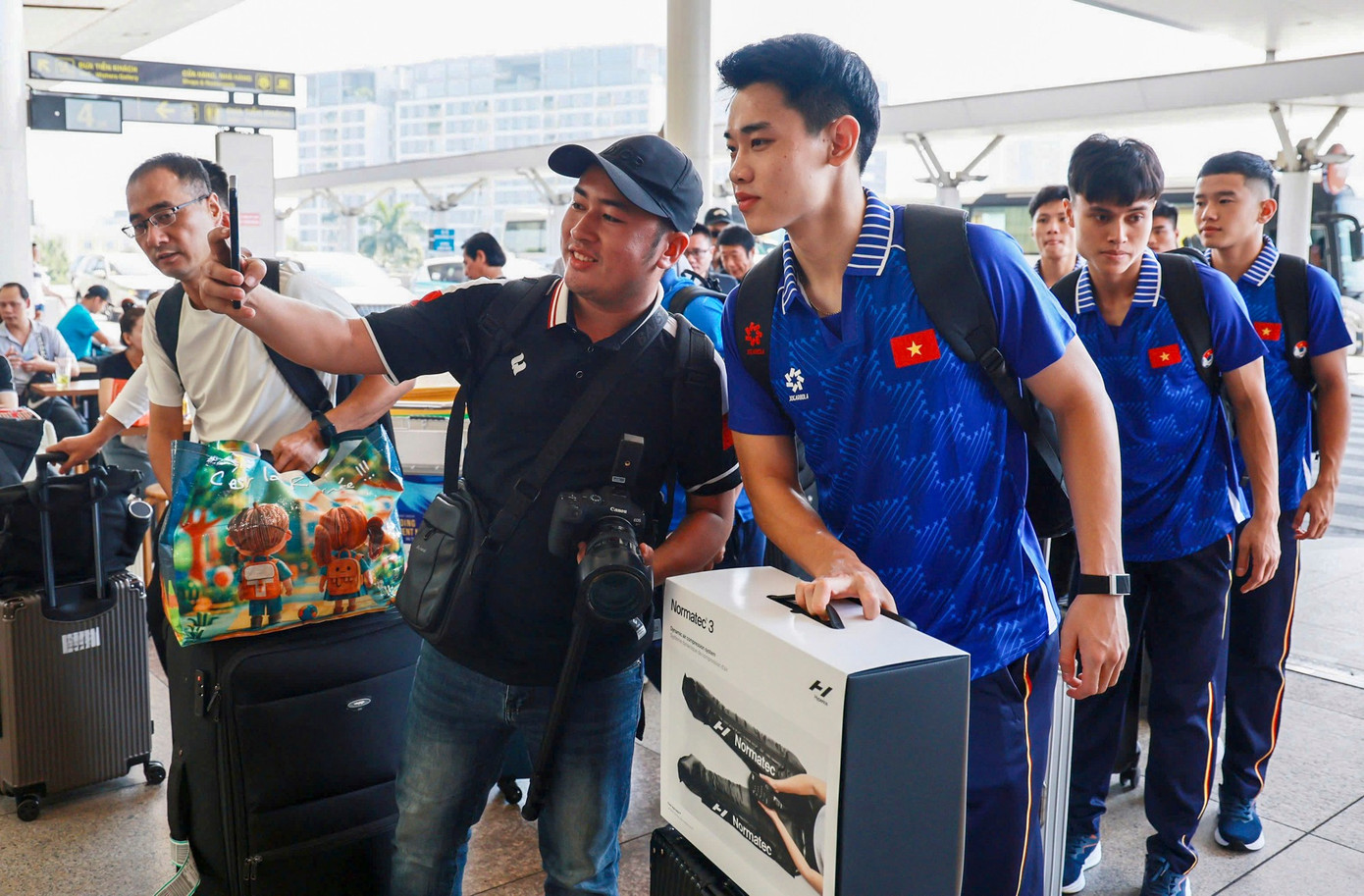 Không khí tại sân bay khá sôi nổi khi các cầu thủ trẻ xuất hiện với tâm trạng thoải mái, mang theo lượng hành lý lớn cho quãng thời gian thi đấu và sinh hoạt kéo dài tại Thái Lan.