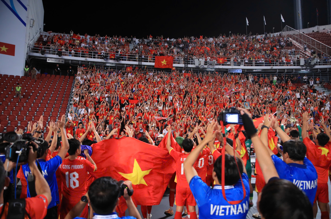 Niềm vui vỡ òa của các CĐV Việt Nam tại sân Rajamangala. Đêm nay họ là những người hạnh phúc nhất.