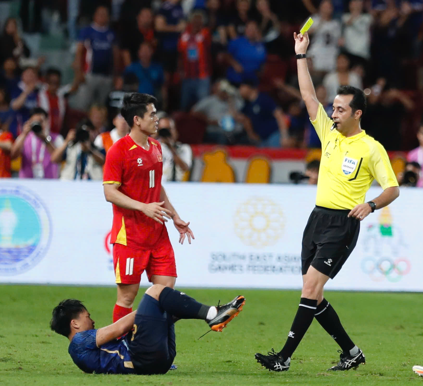 Đình Bắc và các cầu thủ trên hàng công bị phong tỏa và trong bối cảnh tuyến giữa bị Thái Lan khống chế, U22 Việt Nam phải tập trung phòng ngự chiều sâu. Tuy nhiên, các hậu vệ U22 Việt Nam vẫn không ngăn được Thái Lan ghi bàn.