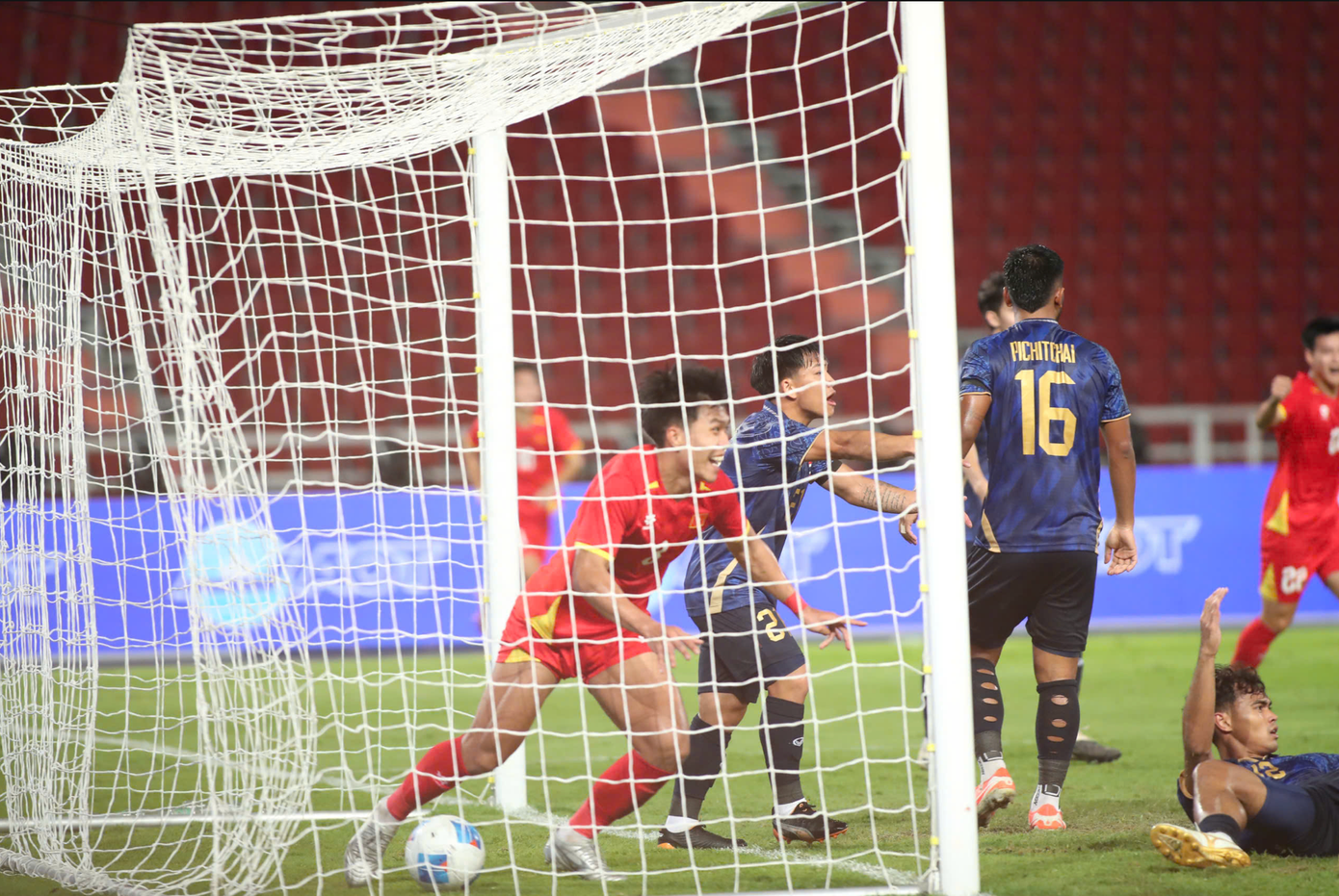 Hai bàn thắng liên tiếp của Yotsakorn Burapha và Seksan ngay trong hiệp 1 khiến hầu hết giới mộ điệu đã nghĩ về một kịch bản xấu cho U22 Việt Nam.