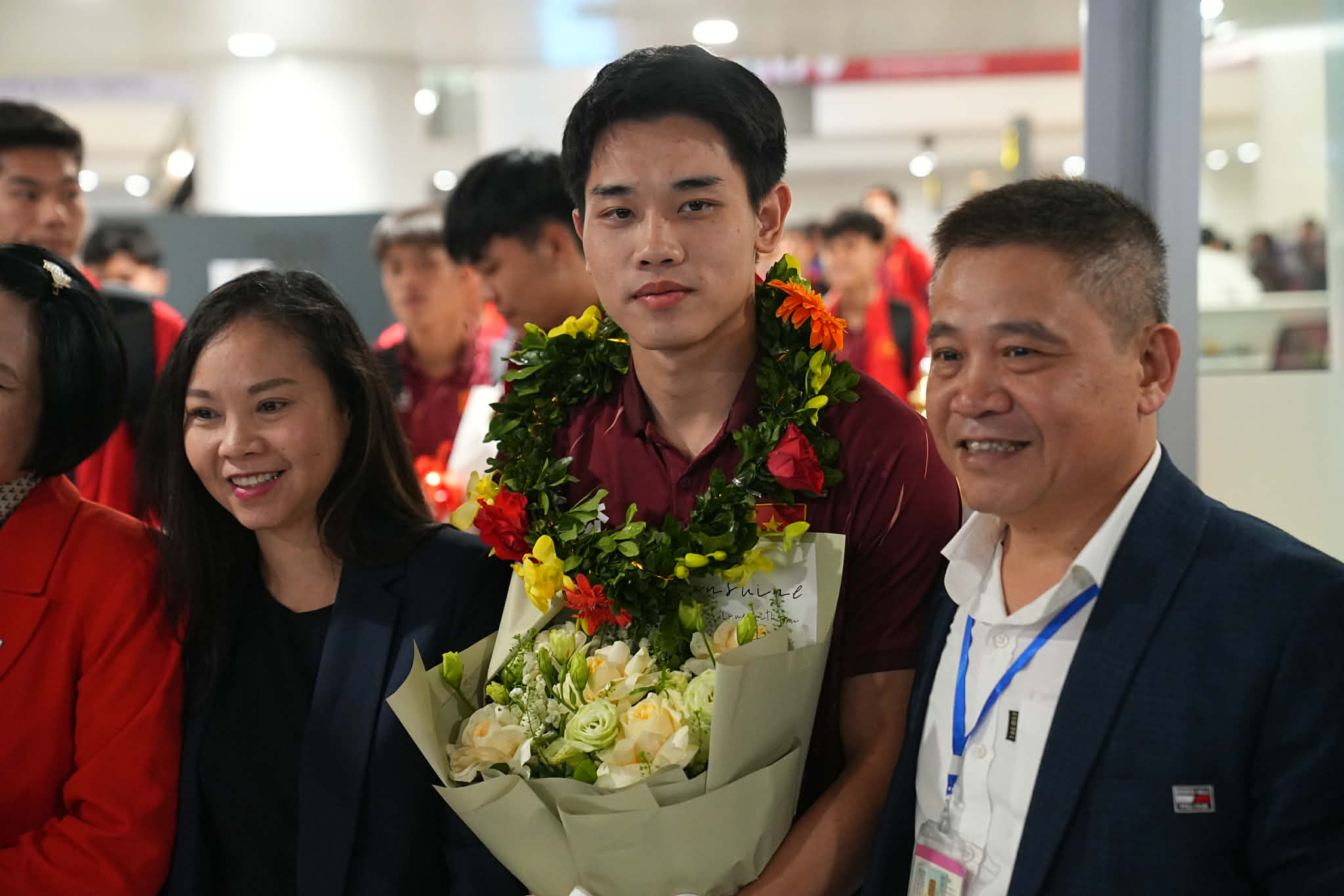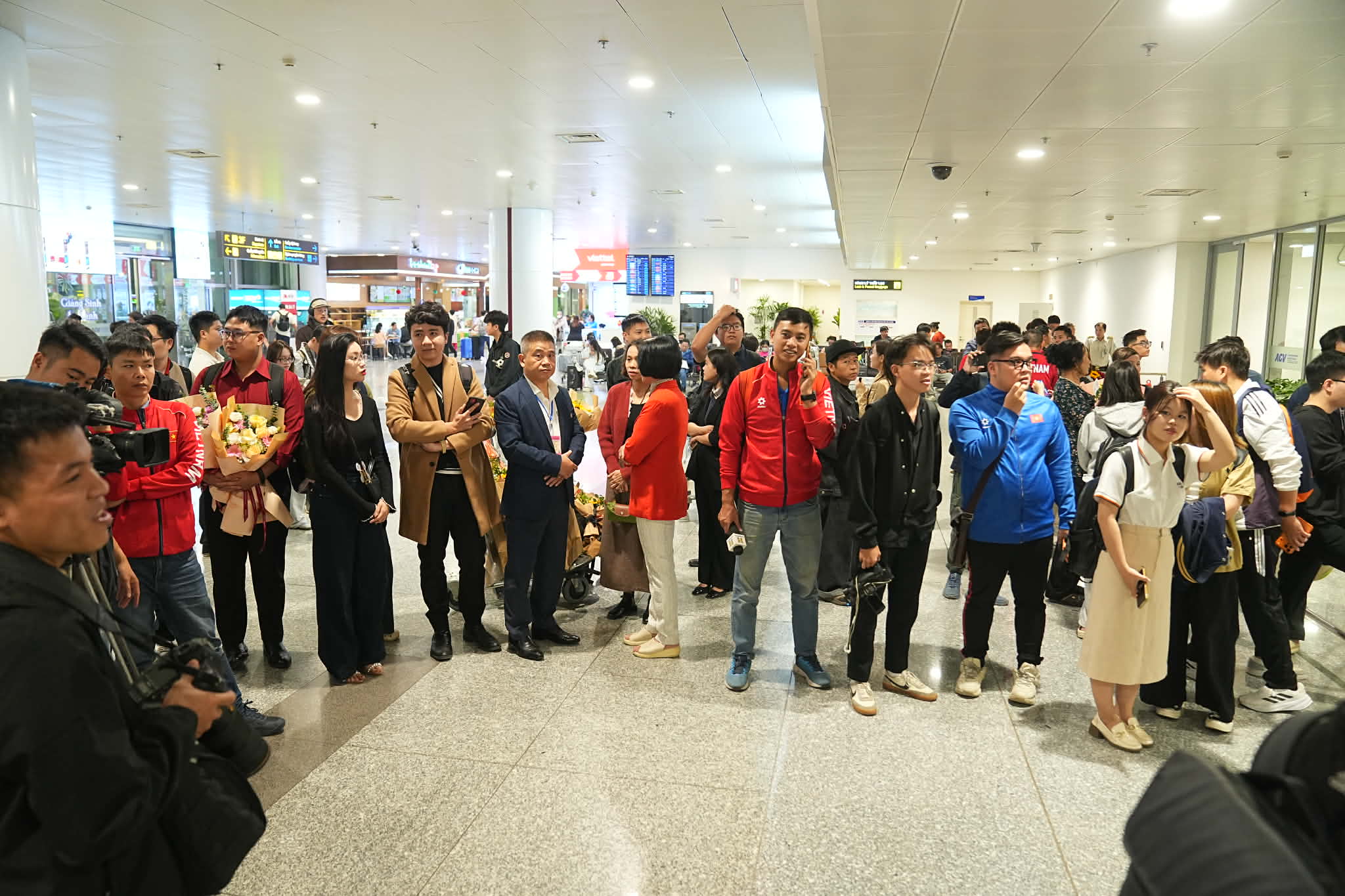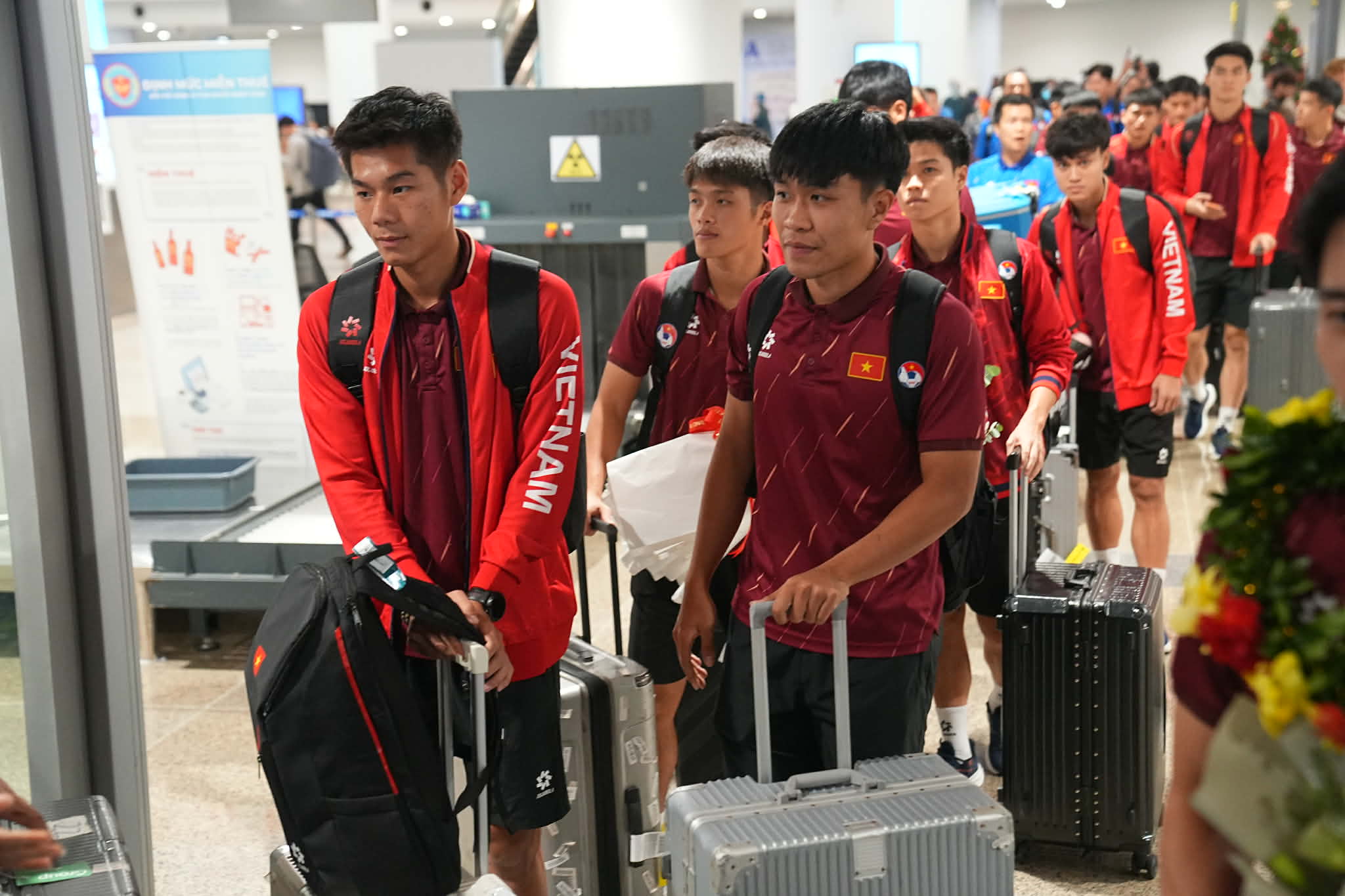 Khoảng 19 giờ, các cầu thủ hoàn thành thủ tục nhập cảnh, lấy hành lý và có mặt ở cửa ra sảnh Nhà ga T2. Các chiến binh sao vàng cùng ban huấn luyện được đông đảo người thân, người hâm mộ chào đón nồng nhiệt.