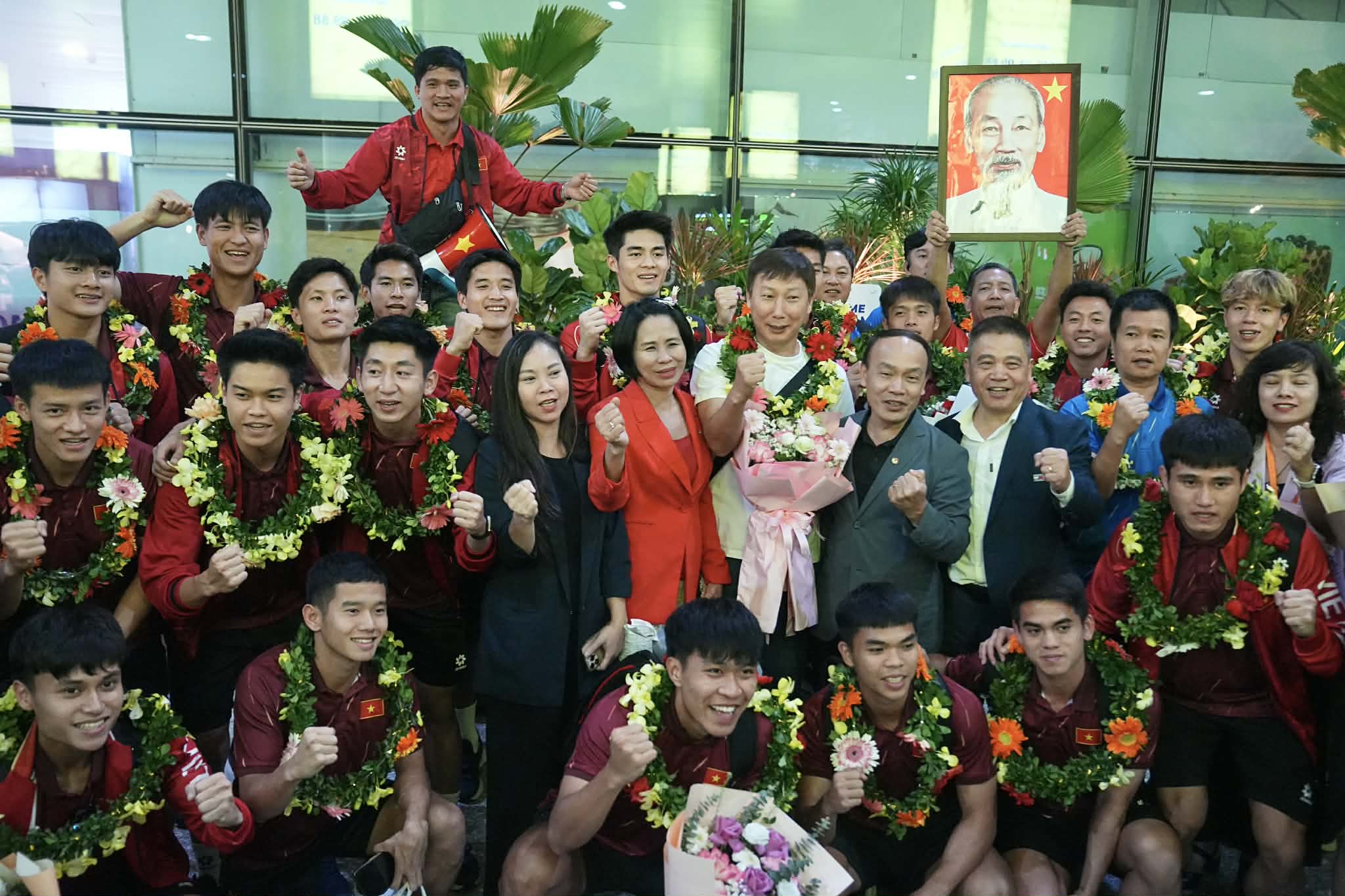 Tối 19-12, ban huấn luyện và các cầu thủ U22 Việt Nam đã có mặt sân bay Nội Bài (Hà Nội), sau khi giành Huy chương vàng (HCV) môn bóng đá nam SEA Games 33.
