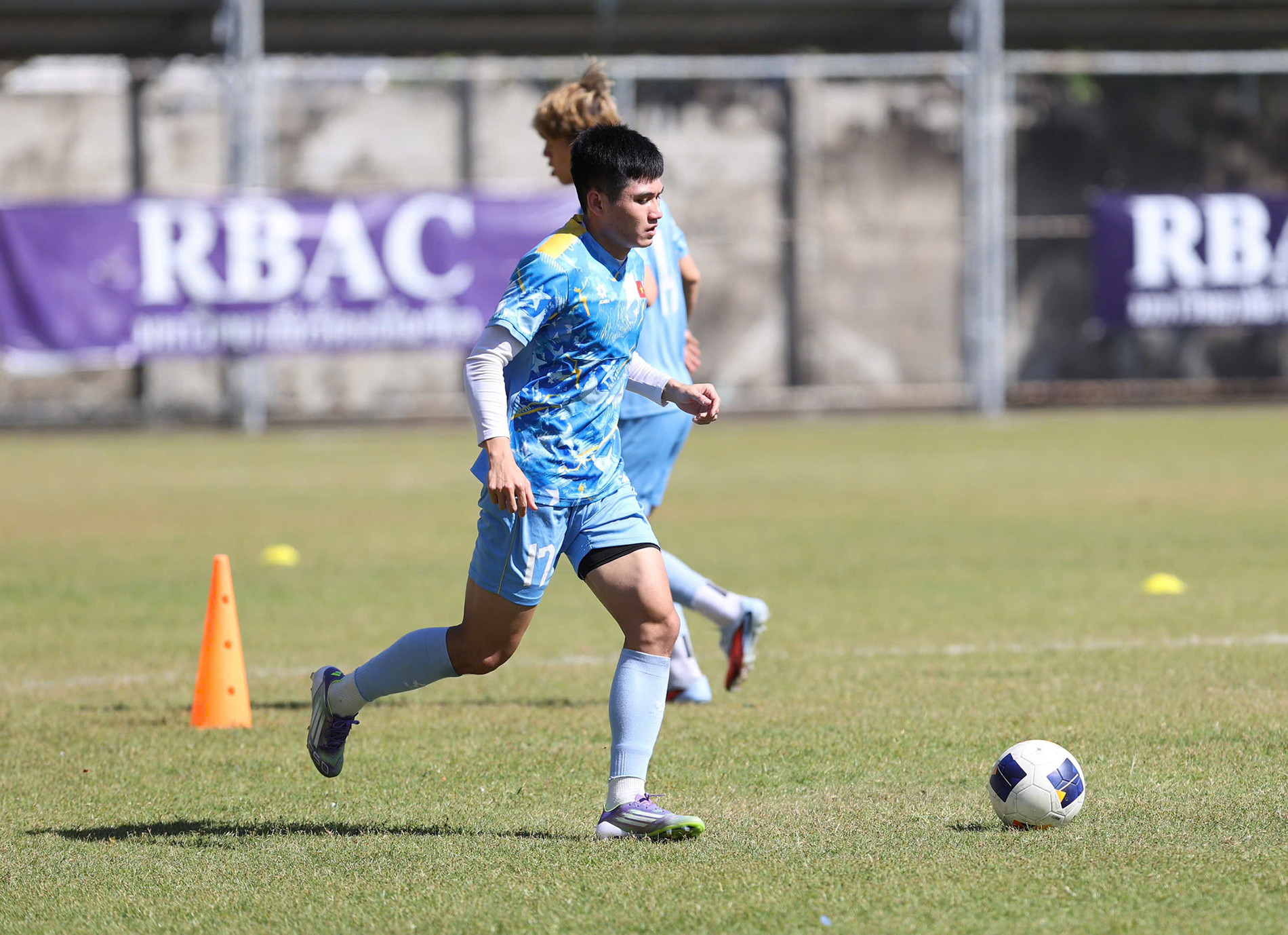Khoảng 10h sáng 6/12, Đình Bắc và các đồng đội bước ra sân tập tại Bangkok, Thái Lan.