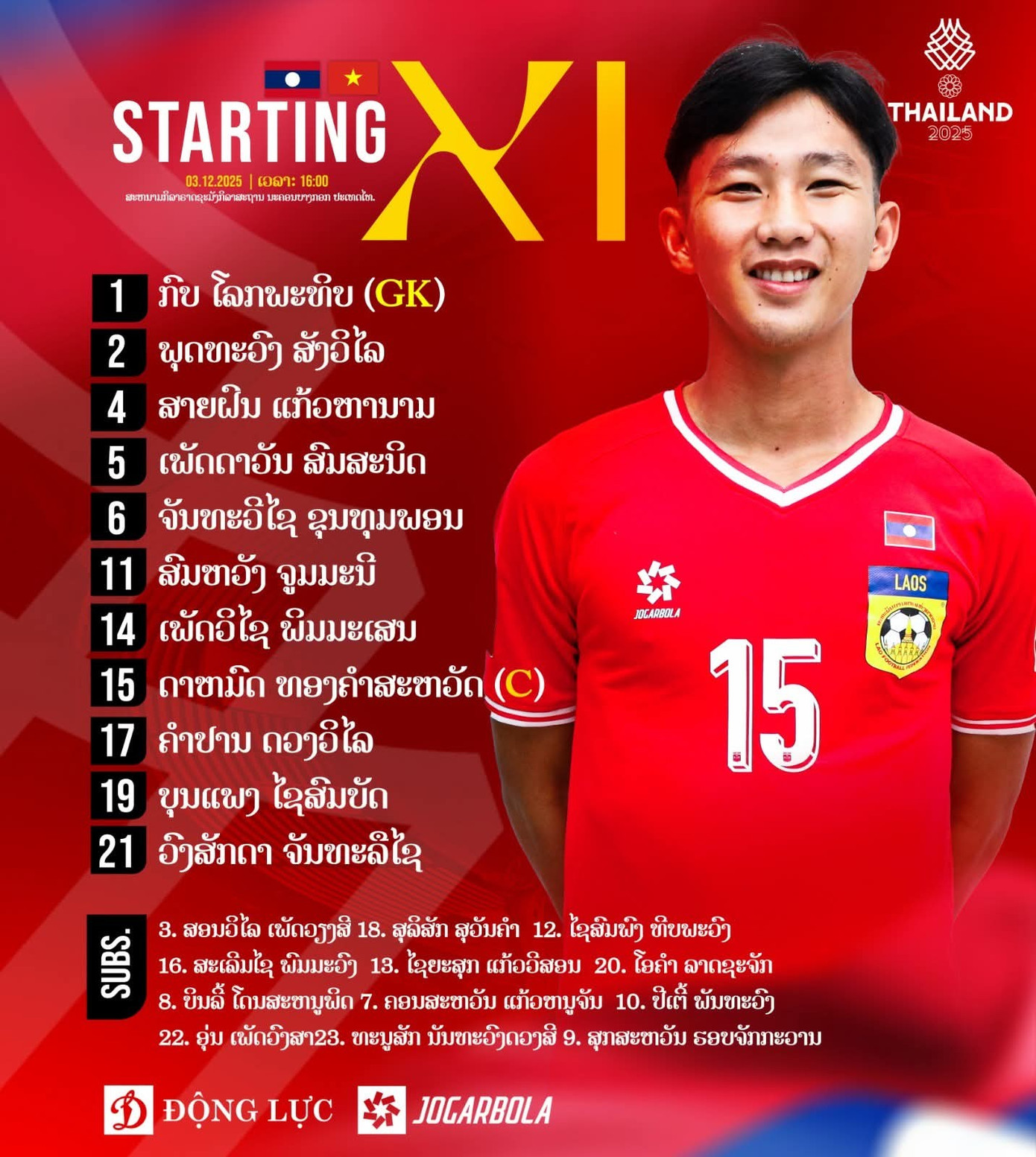 U22 Lào: Lokphathip, Somsanith, Xaysombath, Phetviengsy, Ratchachak, Khunthumphone, Duangwilai, Thongkhamsavat, Winnavong, Phanthavong, Hovchakwan.