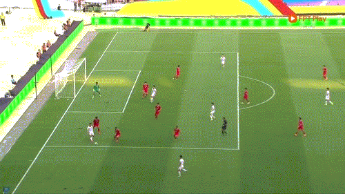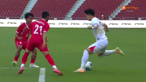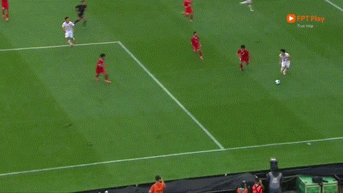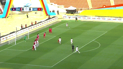 Phút 3: Không có gì ngạc nhiên khi U22 Việt Nam nắm quyền chủ động và cầm bóng áp đảo, nhưng Lào khiến tất cả bất ngờ khi tích cực pressing ngay bên phần sân của đội bóng áo trắng.