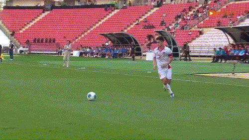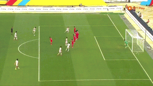 Phút 6: Minh Phúc nỗ lực đi bóng bên cánh phải và mang về quả đá phạt. Văn Khang quyết định đá ngay ở góc khá hẹp. Bóng đi thiếu chính xác.