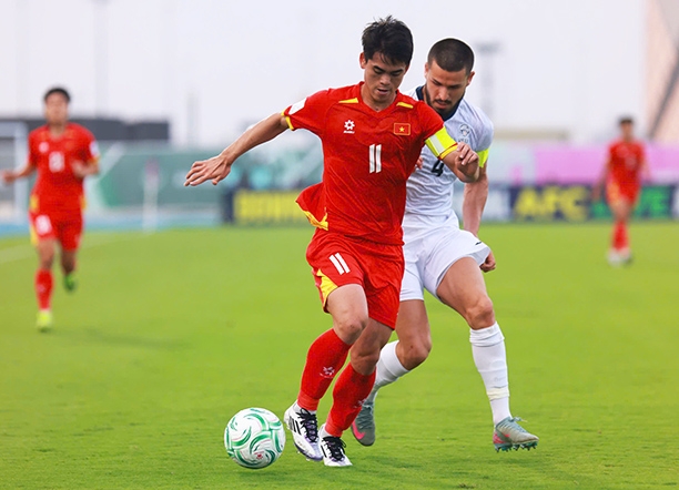 So với trận mở màn, HLV Kim Sang Sik chỉ điều chỉnh duy nhất một vị trí trong đội hình xuất phát khi Quốc Việt được tin tưởng đá chính thay cho Đình Bắc. Trước đối thủ khát điểm và sở hữu nền tảng thể lực tốt, U23 Việt Nam chủ động lựa chọn lối chơi phòng ngự phản công, ưu tiên sự chắc chắn và chờ đợi thời cơ.