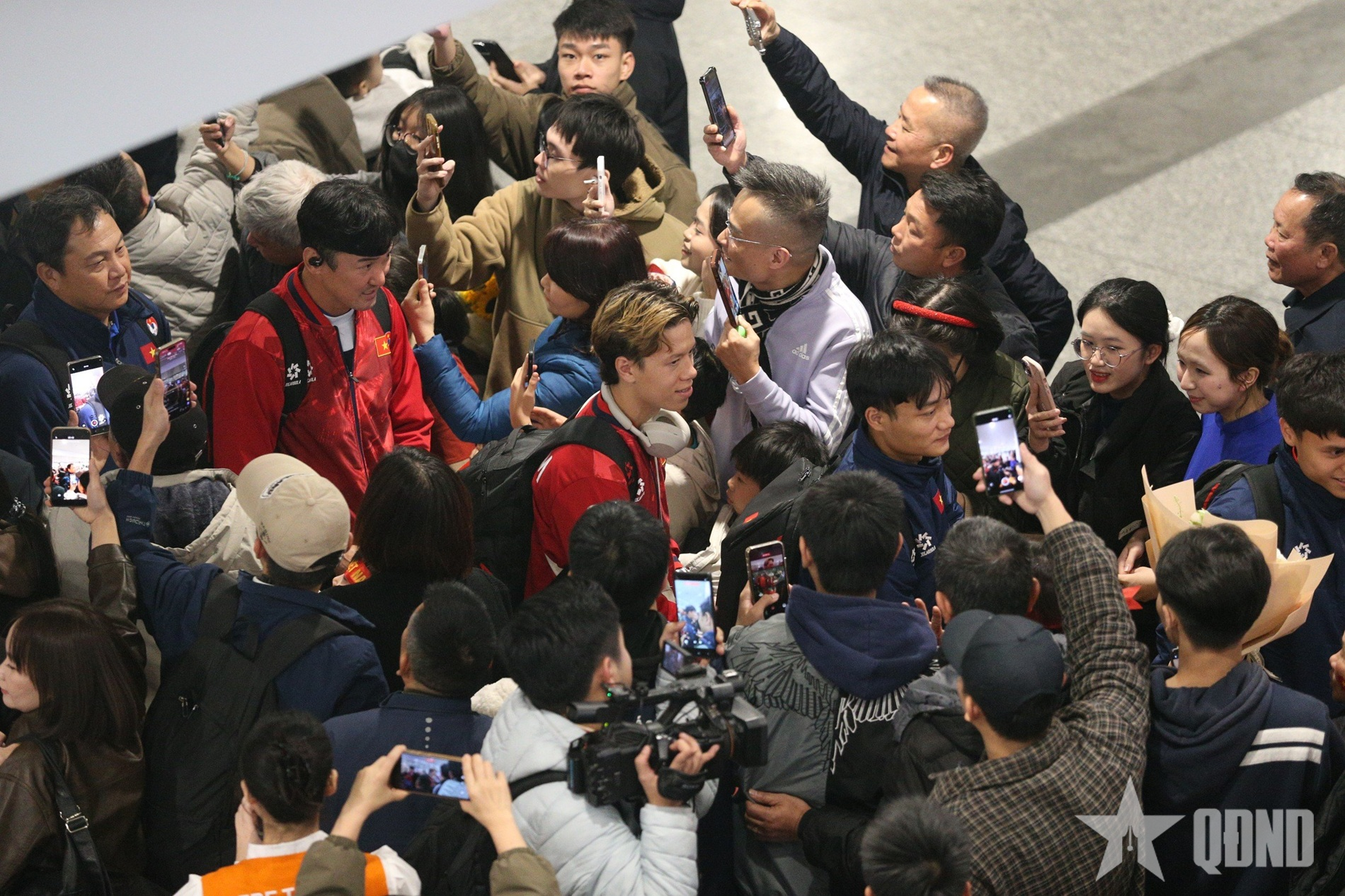 Các fan nữ vây quanh cầu thủ U23 Việt Nam. Ảnh: VIỆT AN