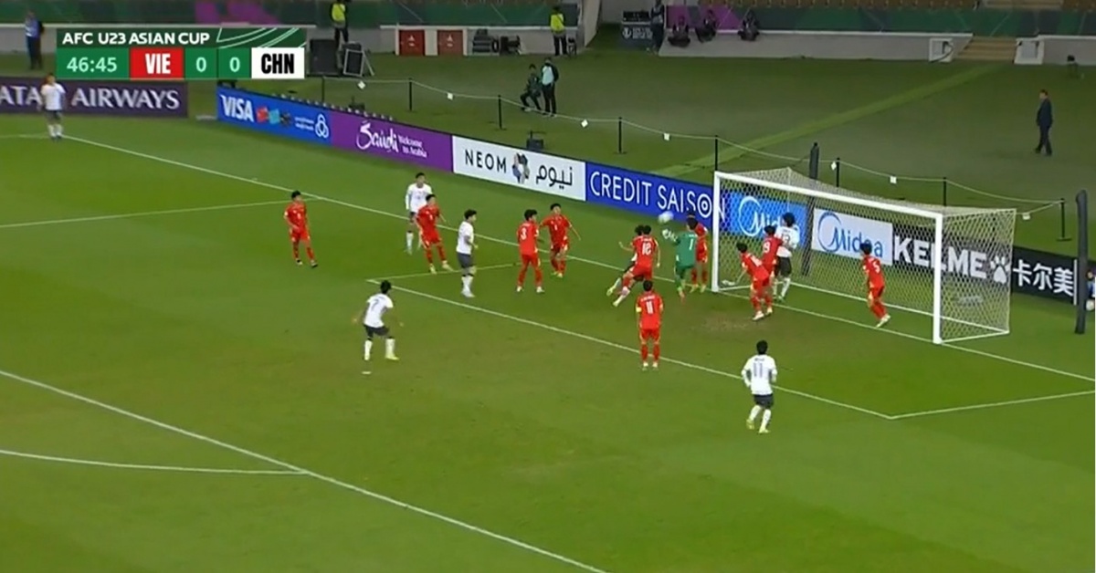 Sau giờ nghỉ, khi trận đấu cần bản lĩnh và sự tập trung cao nhất, U23 Việt Nam lại chịu đòn từ bóng chết. Bàn mở tỷ số của Peng Xiao xuất phát từ phạt góc, và chỉ ít phút sau, sự lúng túng trong bắt người mở ra khoảng trống để Xiang Yuwang dứt điểm nâng tỷ số lên 2-0.