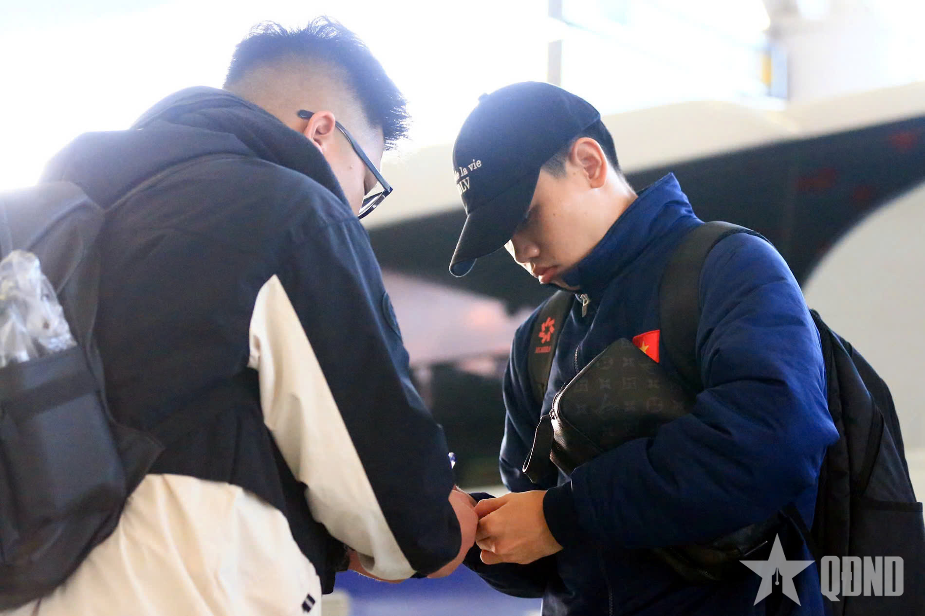 Các cầu thủ làm thủ tục trước khi sang Qatar. Ảnh: VIỆT AN