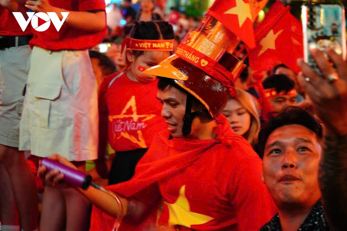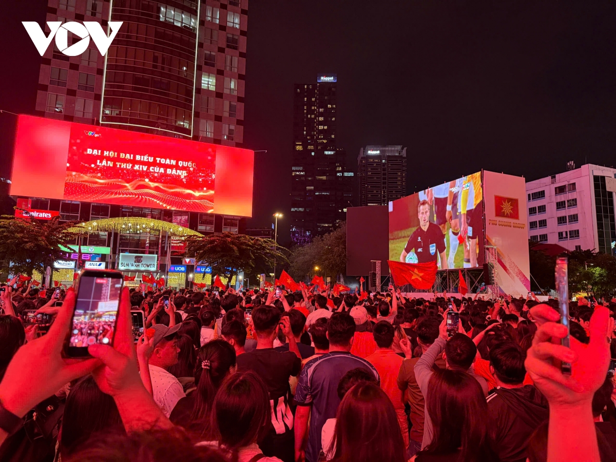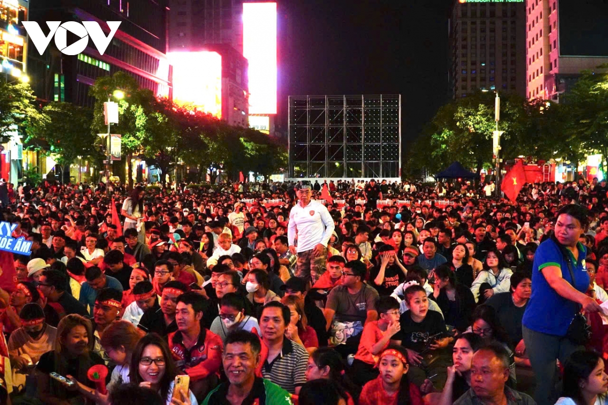 Theo phản ánh của phóng viên Nguyễn Tùng, ngay lúc này tại phố đi bộ Nguyễn Huệ thành phố Hồ Chí Minh màu đỏ đã rực sáng toàn bộ khu phố hàng 1000 người đã về đây tất cả đều hô vang Việt Nam vô địch khi đội tuyển U23 Việt Nam hát quốc ca, nghìn con tim cùng chung một nhịp đập.