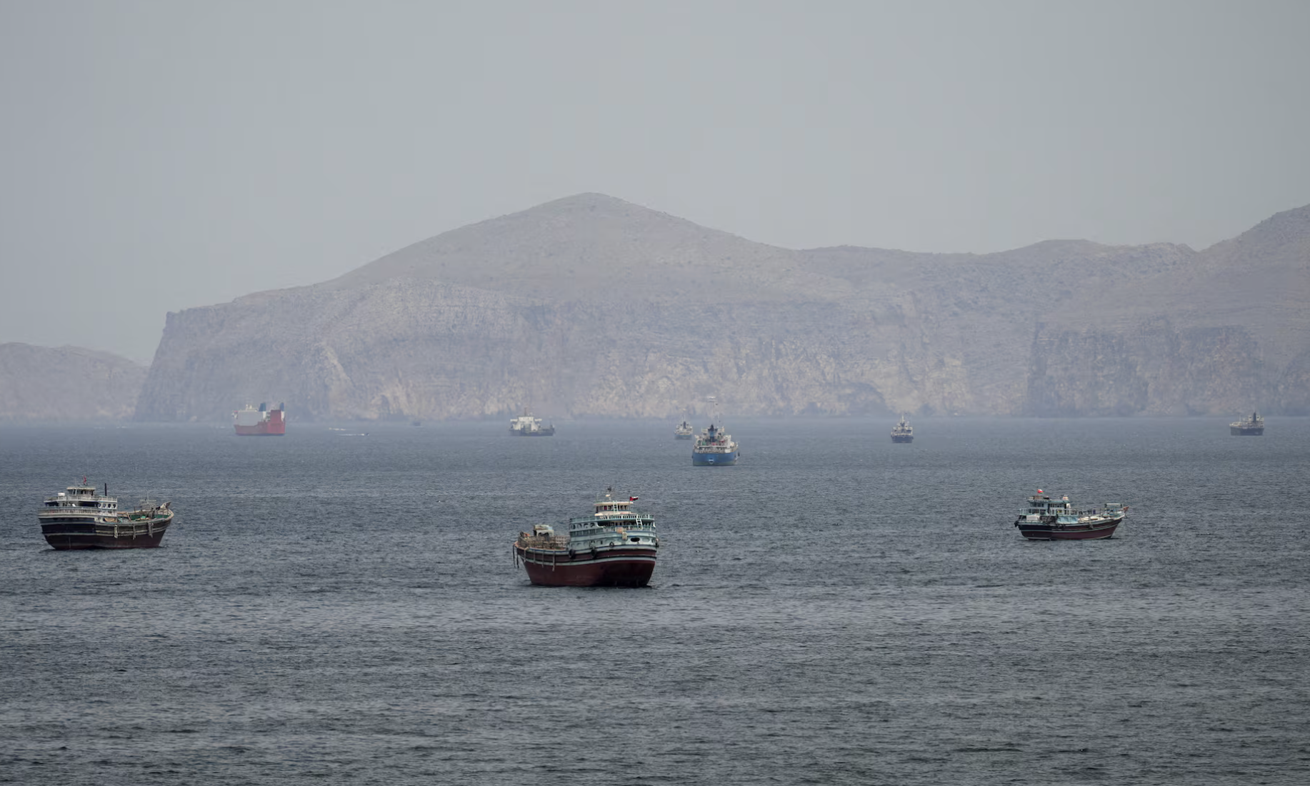 Các con tàu di chuyển trên eo biển Hormuz, đoạn qua Musandam, Oman - Ảnh: Reuters