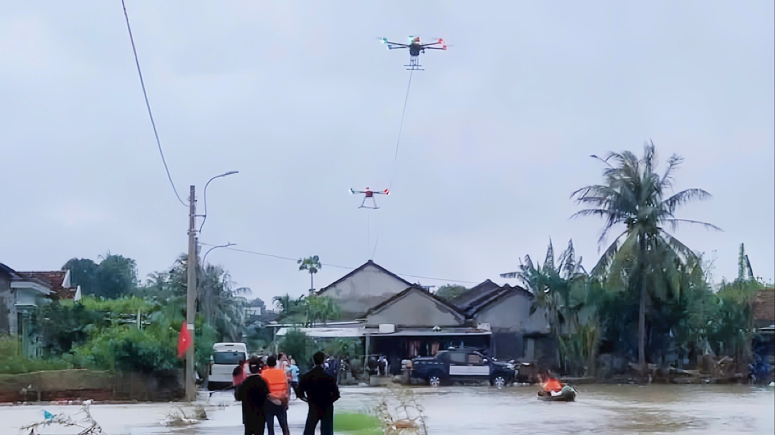 Các UAV của CT UAV xác định vị trí người dân cần giúp đỡ và vận chuyển nhu yếu phẩm tại xã Hòa Xuân Đông (Phú Yên cũ)