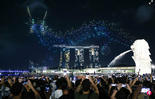 Màn trình diễn ánh sáng bằng 1.500 UAV tại Singapore vào năm ngoái - Ảnh: Zaobao