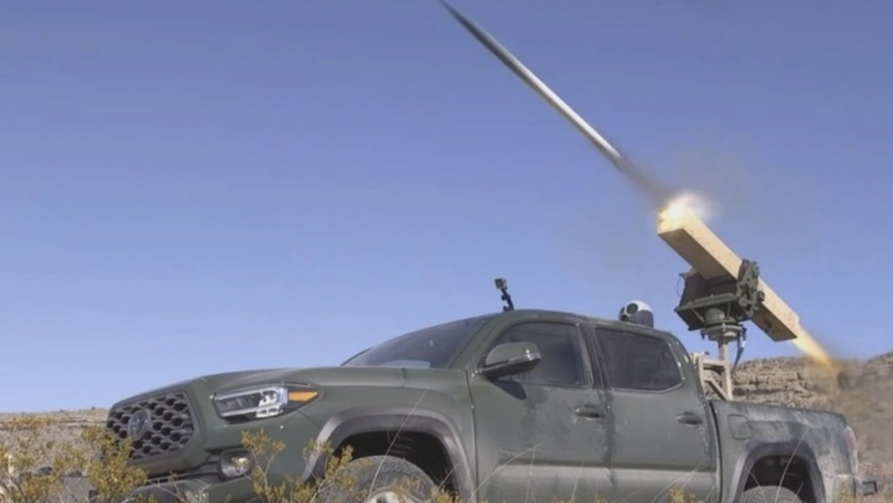 Ngay khi trúng đích, hệ thống phát nổ, khiến một quả đạn nạp sẵn tự phóng khỏi bệ, tạo ra vụ cháy lớn.