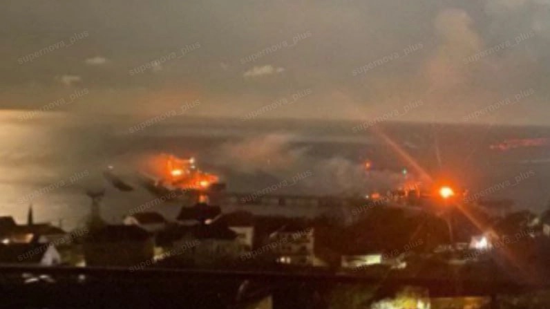 Các UAV tấn công nhà máy lọc dầu và cảng Tuapse của Nga gây hỏa hoạn hồi tháng 11. Ảnh: Supernova+/Telegram