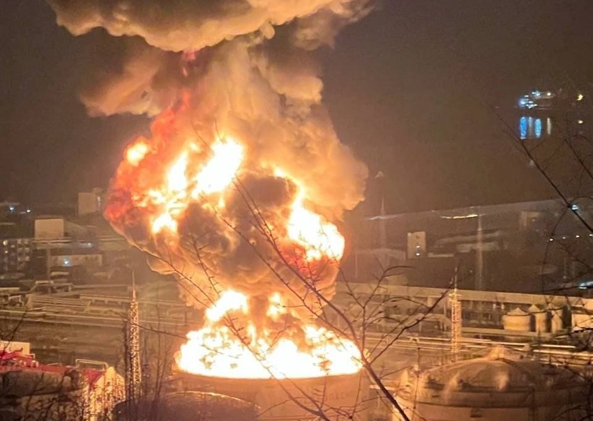 UAV Ukraine tấn công nhà máy lọc dầu Tuapse ở vùng Krasnodar của Nga. Ảnh: ASTRA