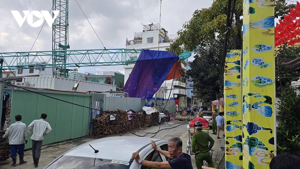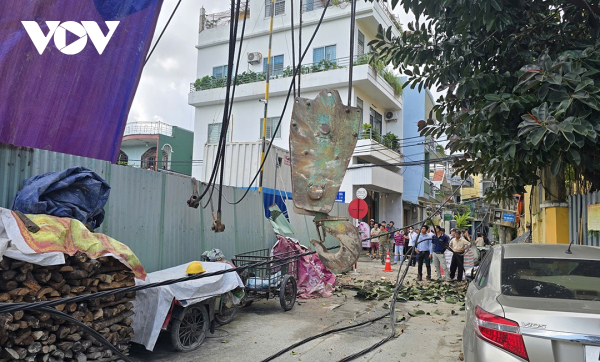 Móc sắt của cẩu rơi xuống, may mắn không có người qua lại nên không có thương vong