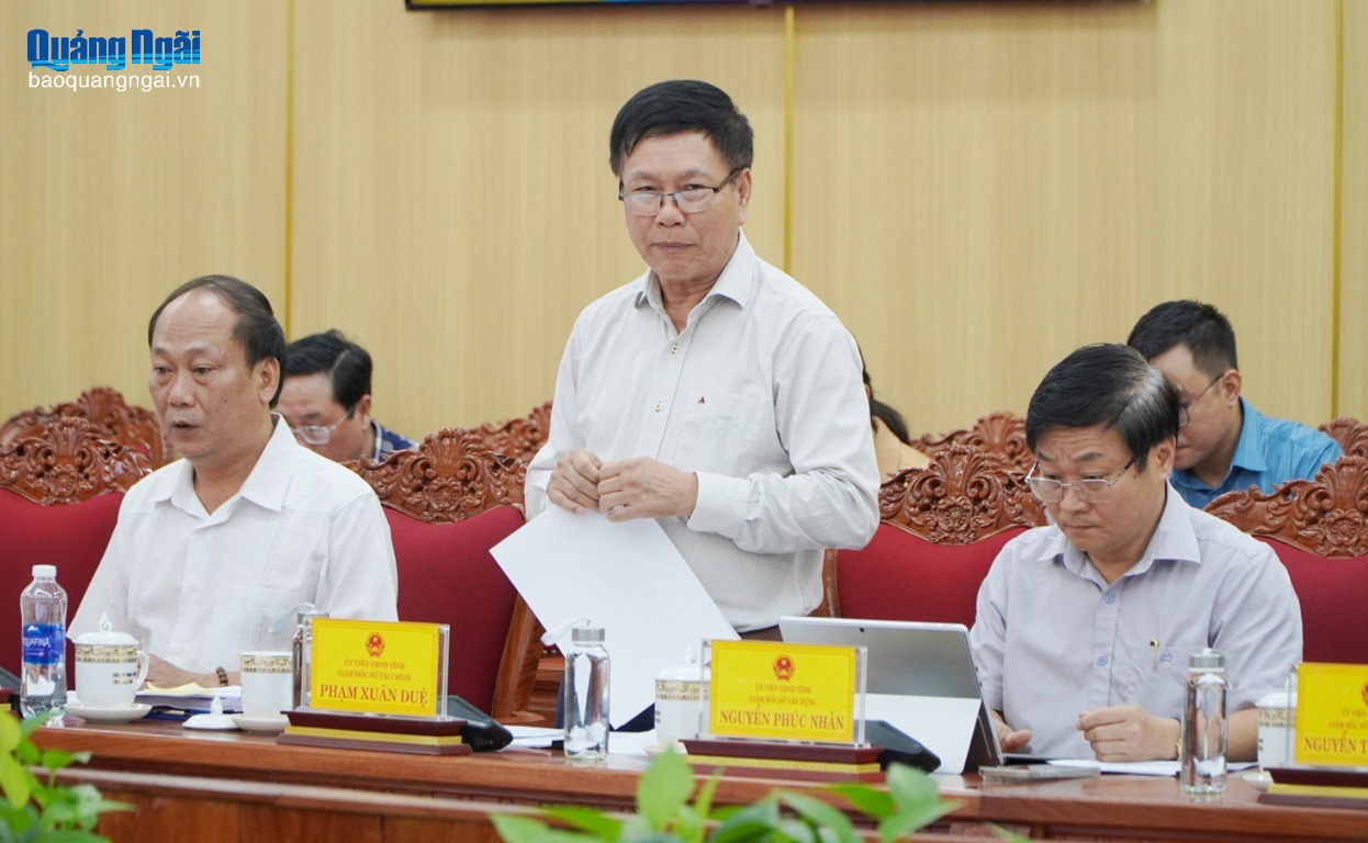 Tại cuộc họp, Giám đốc Sở Tài chính Phạm Xuân Duệ trình bày dự thảo Quy định các nhiệm vụ chi tổ chức thực hiện sắp xếp đơn vị hành chính và mức hỗ trợ đối với các đơn vị hành chính cấp xã thực hiện sắp xếp trên địa bàn tỉnh Quảng Ngãi năm 2025.