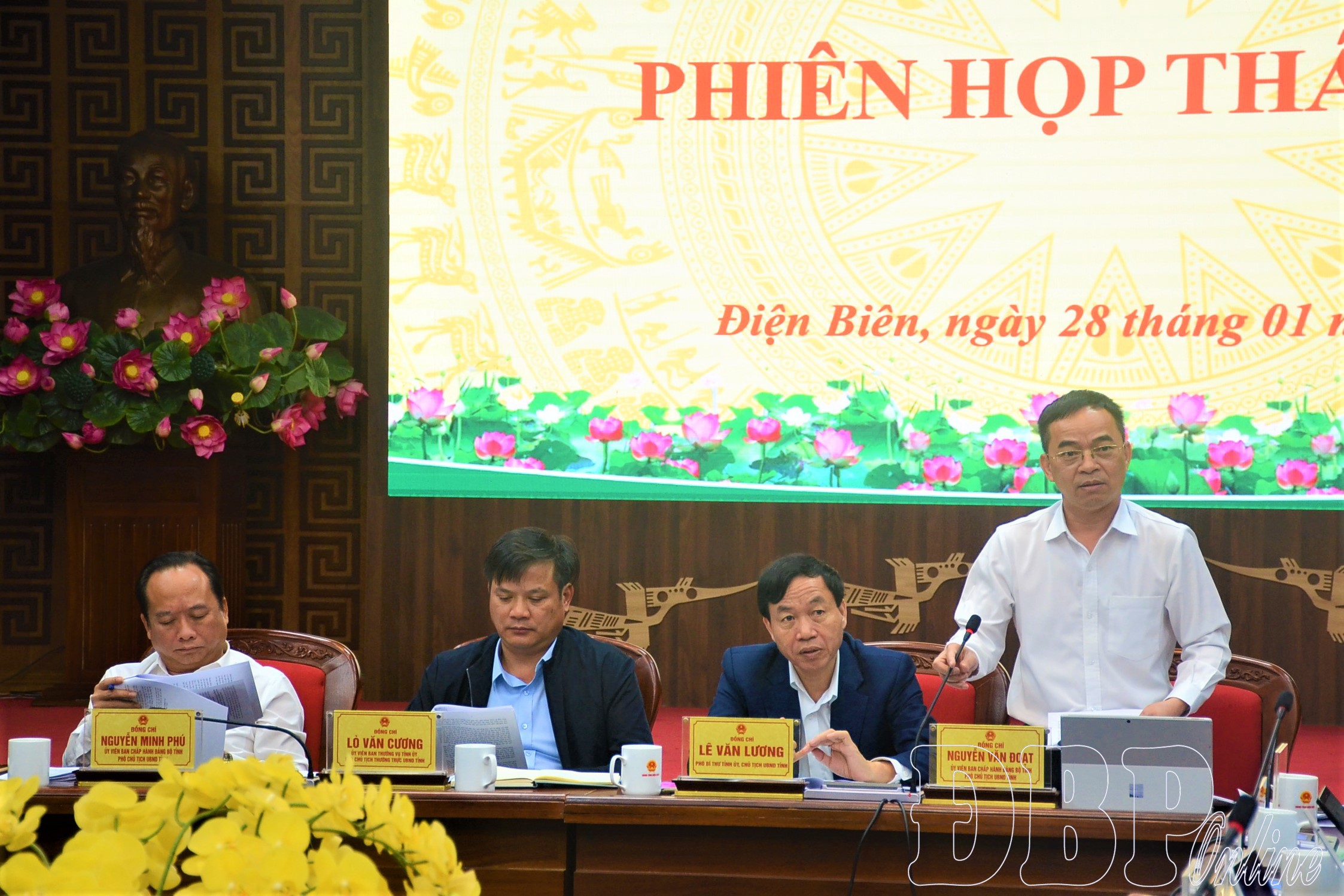 Đồng chí Lò Văn Cương, Ủy viên Ban Thường vụ Tỉnh ủy, Phó Chủ tịch thường trực UBND tỉnh tham gia ý kiến tại phiên họp.