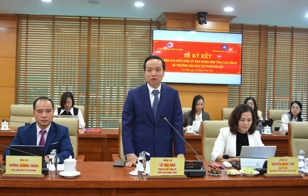 Chủ tịch UBND tỉnh mong muốn Trường Đại học Sư phạm Hà Nội tiếp tục hỗ trợ Cao Bằng sâu rộng hơn trong các lĩnh vực: đào tạo từ xa, đào tạo số, hoạt động khoa học công nghệ. Trước mắt, giải quyết được vấn đề tối ưu hóa quy mô trường lớp học; nghiên cứu xây dựng mô hình Trường THCS năng khiếu để phát hiện hạt nhân tài năng sớm. Hợp tác xây dựng trường Chuyên tỉnh thực sự là “địa chỉ đỏ” đào tạo nguồn nhân lực chất lượng cao.
