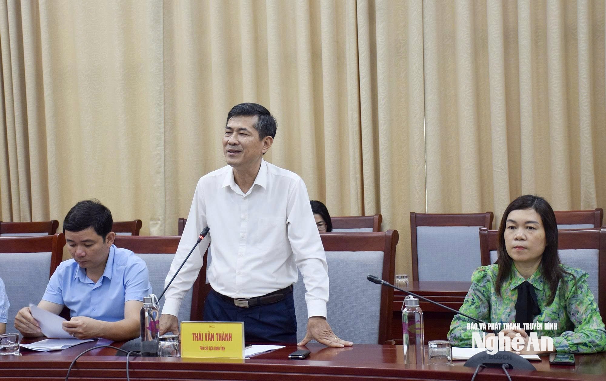 Đồng chí Thái Văn Thành - Ủy viên Ban Chấp hành đảng bộ tỉnh, Phó Chủ tịch UBND tỉnh phát biểu tại buổi làm việc. Ảnh: Thúy Vinh