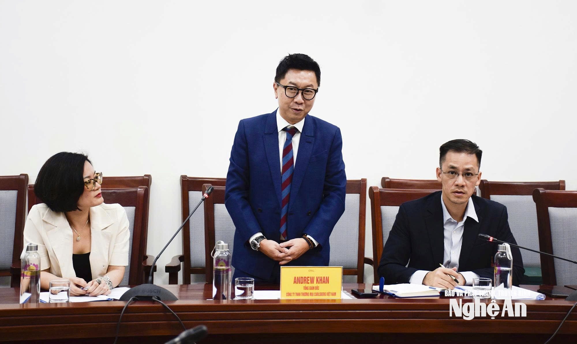 Tại buổi làm việc, Tổng Giám đốc Công ty TNHH Thương mại Carlsberg Việt Nam ông Andrew Khan khẳng định: Doanh nghiệp sẽ gắn bó lâu dài với tỉnh Nghệ An thông qua việc tăng cường hợp tác với chính quyền địa phương và xây dựng mối liên kết chặt chẽ hơn nữa với cộng đồng.