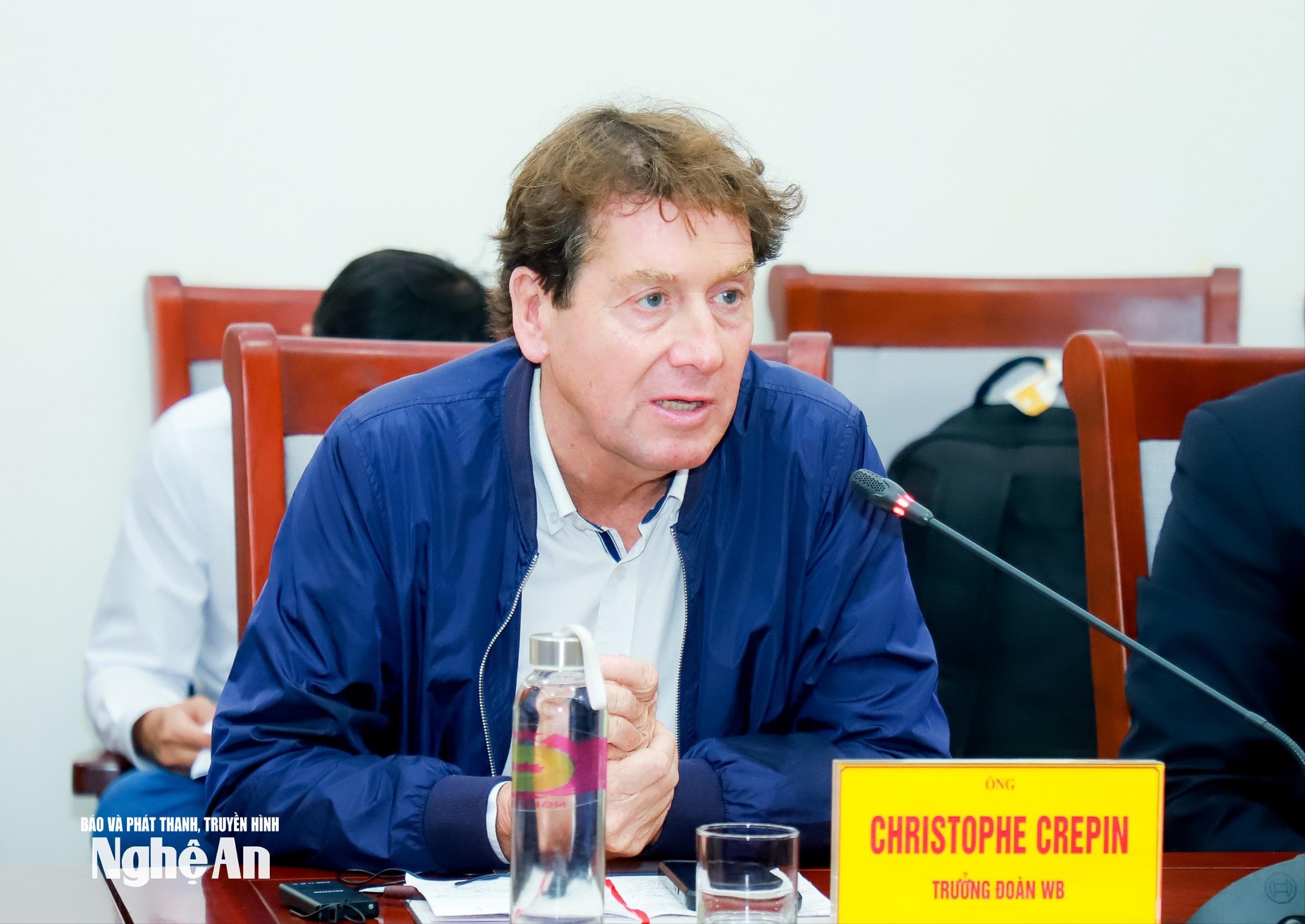 Ông Christophe Crepin làm Trưởng đoàn công tác WB phát biểu tại cuộc làm việc. Ảnh: Thành Duy