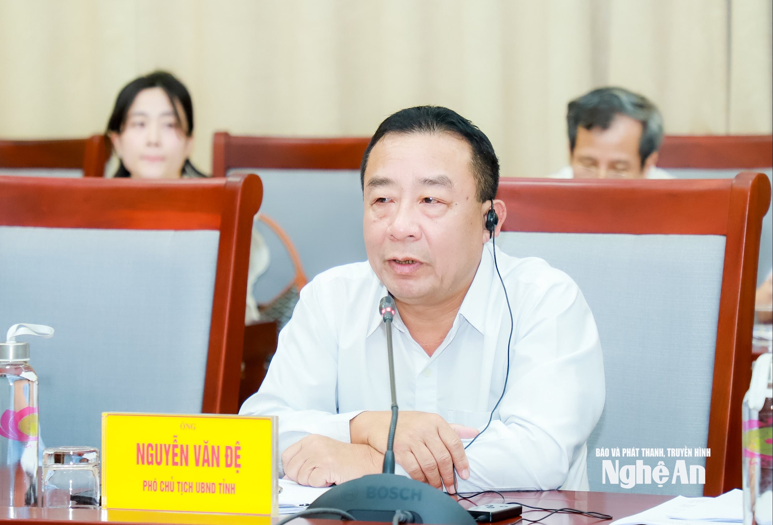 Phó Chủ tịch UBND tỉnh Nguyễn Văn Đệ phát biểu tại cuộc làm việc. Ảnh: Thành Duy