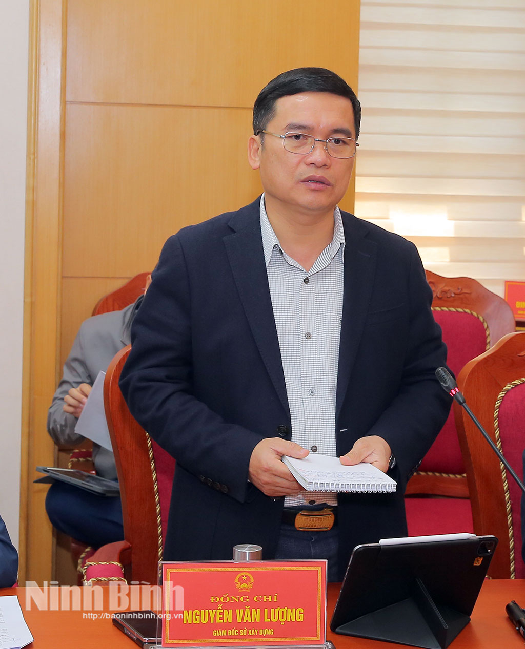 Đồng chí Nguyễn Văn Lượng, Ủy viên Ban Thường vụ Tỉnh ủy, Giám đốc Sở Xây dựng phát biểu tại hội nghị.