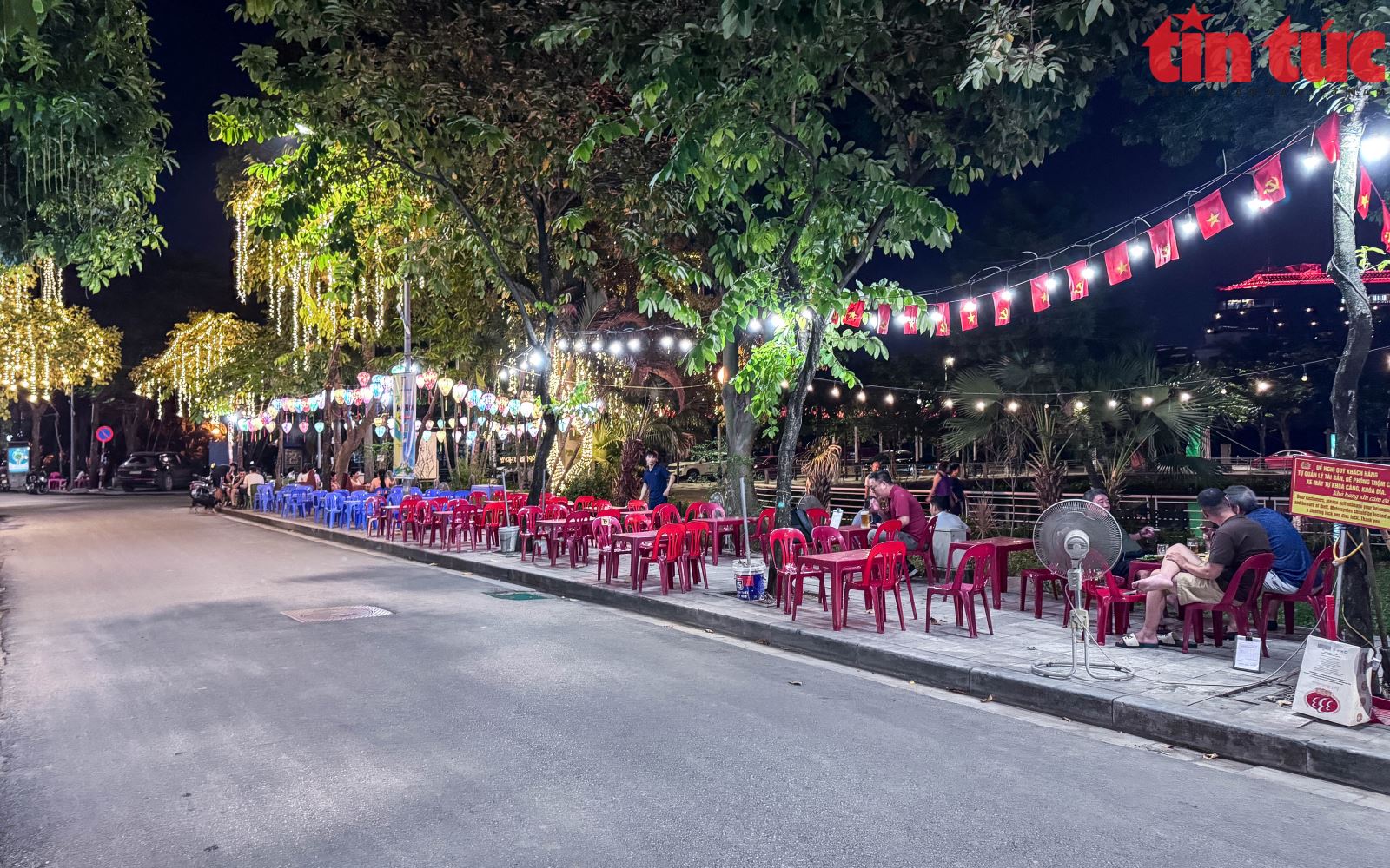 Dù là nơi công cộng, nhưng những ngày gần đây, vỉa hè các tuyến đường quanh hồ Tây trở thành điểm ăn, uống của một số hàng quán.