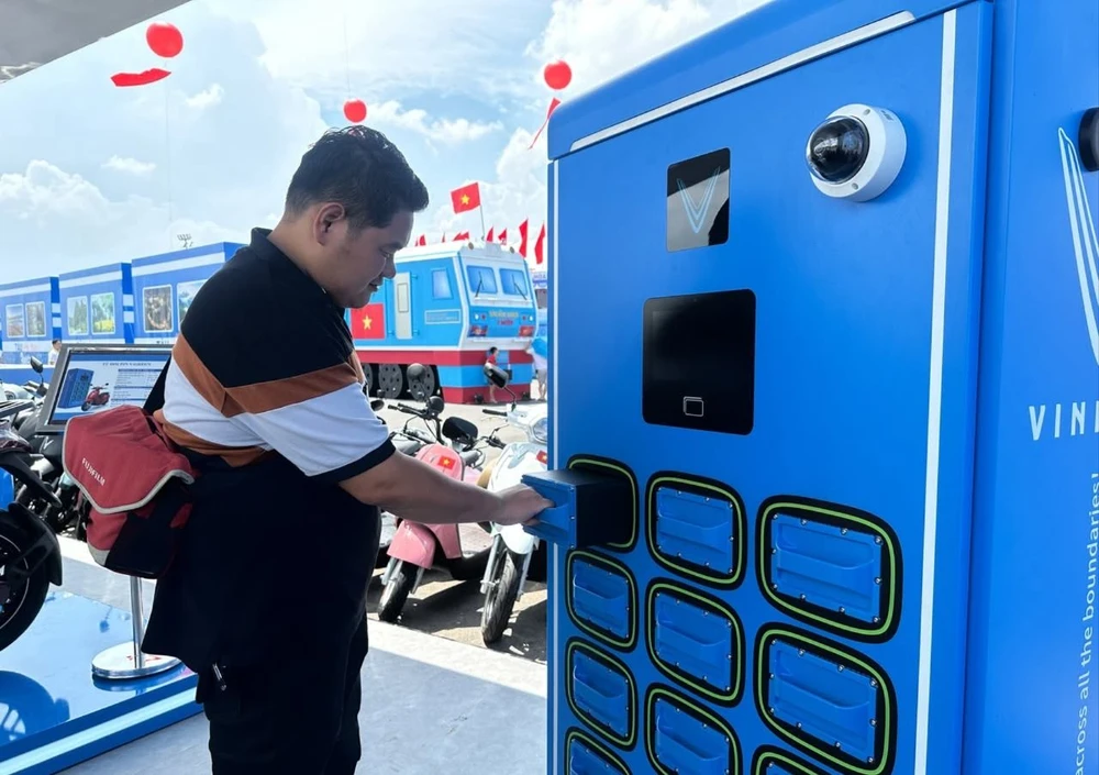 Thí điểm lắp đặt tủ đổi pin xe điện để thuận tiện cho người dân. Ảnh: VĂN THUẬN