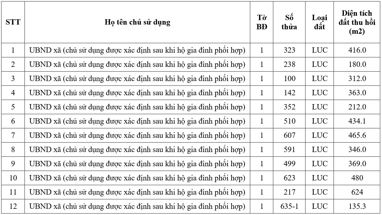 Đến nay, công tác kê khai kiểm đếm để thực hiện dự án đã cơ bản hoàn thành. Tuy nhiên, đến nay còn một số thửa đất chưa xác định được thông tin của chủ sử dụng đất, chưa xác định được thông tin địa chỉ của chủ sử dụng đất để mời thực hiện kê khai kiểm đếm về đất và tài sản trên đất theo quy định, như sau: