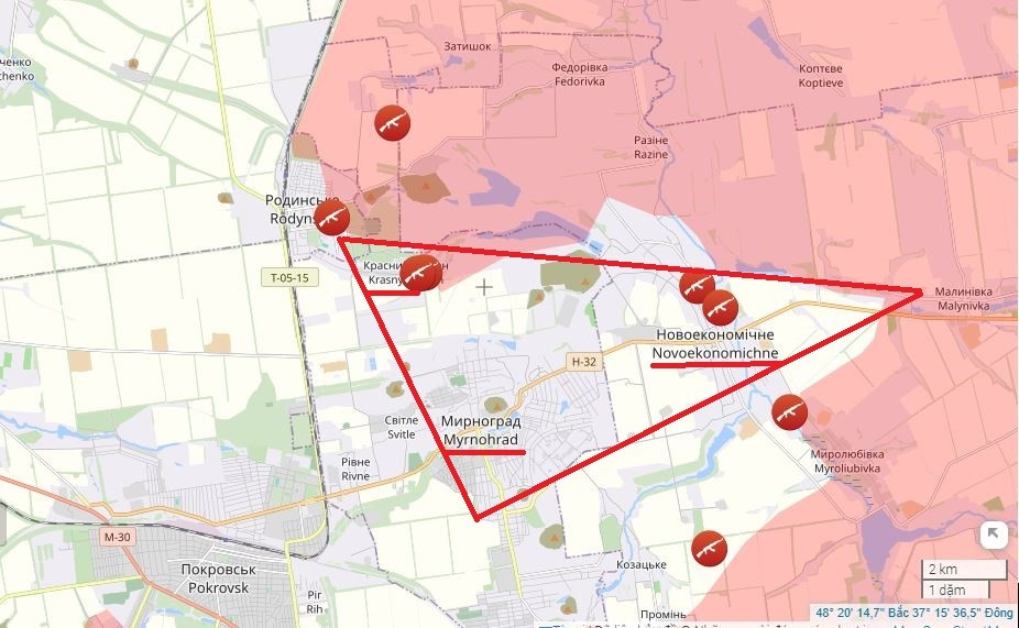 Trang Military Review của Nga đưa tin, quân đội Nga (RFAF) ở mặt trận phía bắc thành phố Pokrovsk, hiện không chỉ giữ vững vị trí gần Myrnohrad và khu vực xa là phía bắc làng Kucherov Yar, mà còn thiết lập được một hành lang khá ổn định dẫn đến đó.