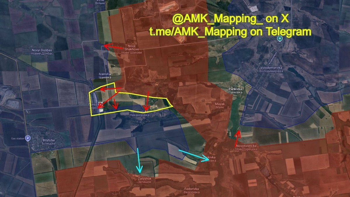 Trang tin quân sự Anna News nhận định, vòng vây của RFAF đang khép chặt quân Ukraine ở Dobropolye, sau khi họ kiểm soát được làng Dorozhnje ở mũi thọc sâu. RFAF đang tiến về phía trước và đã xâm nhập vào khu vực phía bắc Nykanorivka.