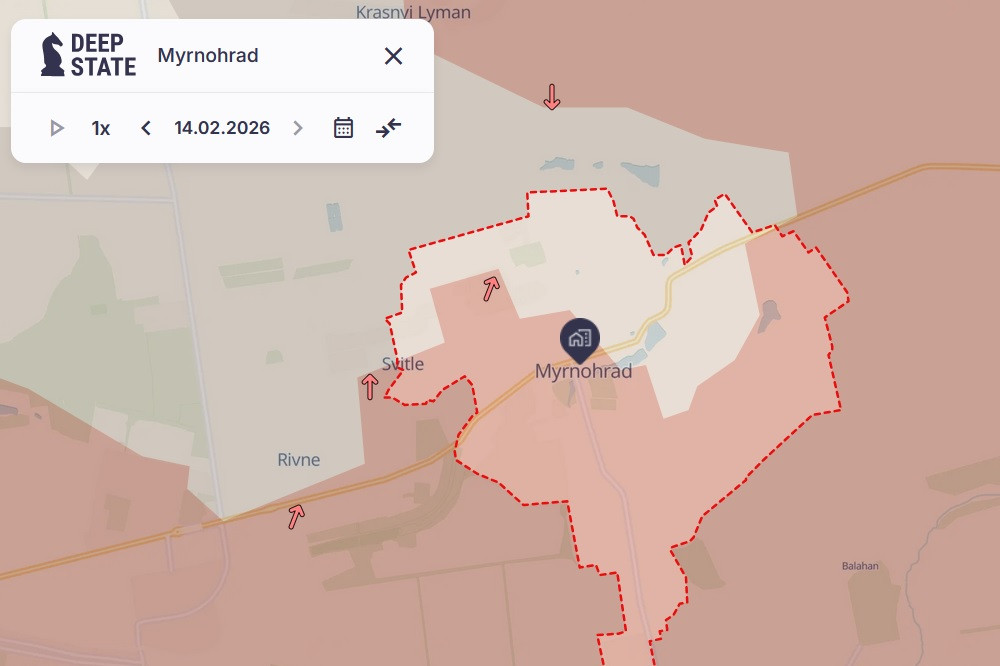 Theo bản đồ do chuyên trang Deep State cung cấp, trung tâm Myrnohrad đã nằm trong sự kiểm soát của quân Nga. Các lực lượng Moscow đang mở 2 mũi tấn công gọng kìm nhằm vào vị trí của lính phòng thủ Ukraine.
