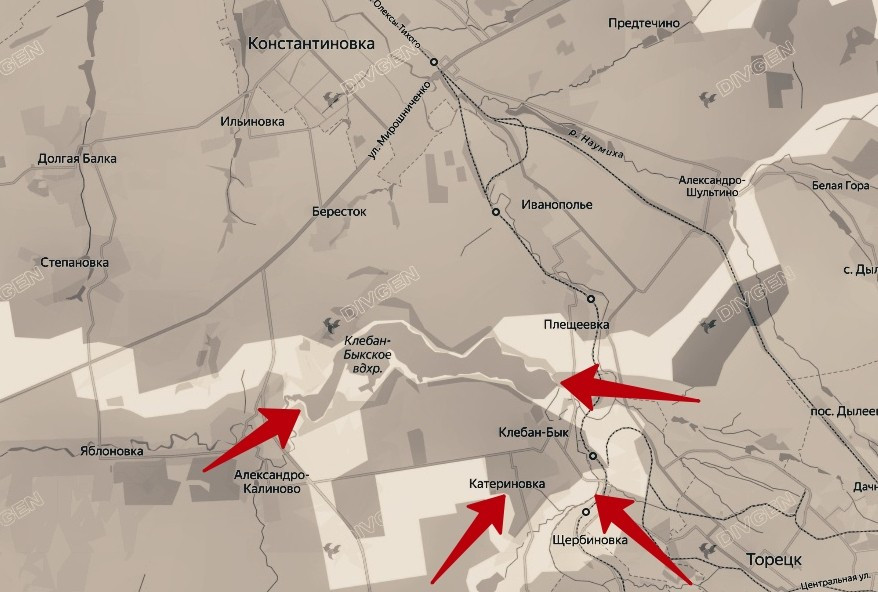 Chiến dịch tấn công Toretsk đang dần khép lại, khi tàn quân của Cụm quân Toretsk AFU, vốn từng là một trong những lực lượng vũ trang hùng mạnh nhất Ukraine, đã rút về phía sau một con hào đào dọc theo tuyến đường Kleban-Byk-Aleksandro-Kalinovo. Tuy nhiên, quân Ukraine hiện cũng không kiểm soát được dải đất hẹp rộng 2 km, dọc theo bờ phía nam của hồ chứa Kleban-Byk.