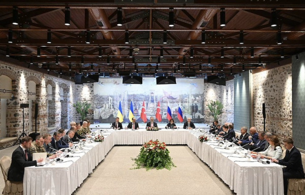 Phái đoàn Nga và phái đoàn Ukraine đàm phán tại Thổ Nhĩ Kỳ hồi tháng 7. Ảnh: TASS
