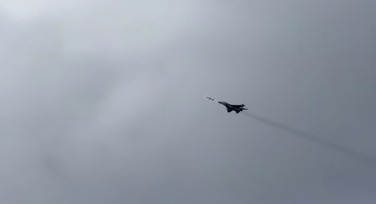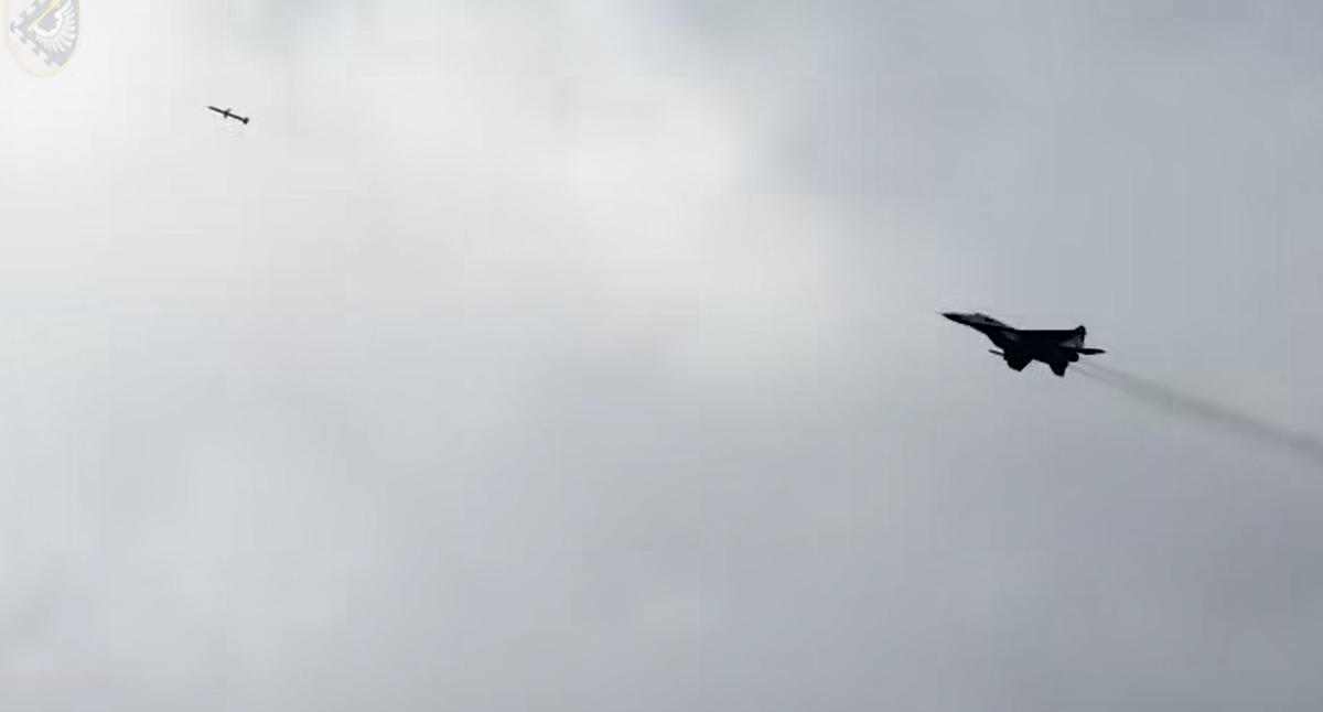 Đoạn clip cho thấy một máy bay chiến đấu thuộc lữ đoàn không quân chiến thuật Ukraine đã thực hiện một cuộc tấn công chính xác bằng tên lửa chống bức xạ. Ảnh: @Bộ Tư lệnh Không quân phía Tây Ukraine.