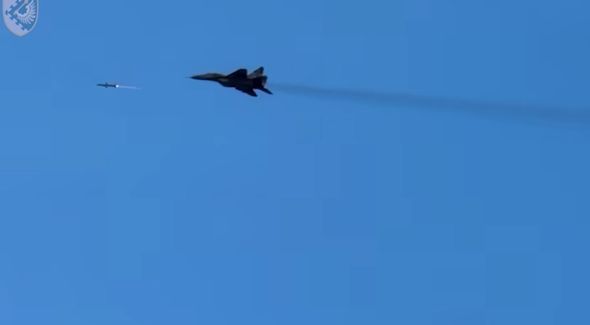 Mới đây, Bộ Tư lệnh Không quân phía Tây Ukraine đã công bố đoạn clip mới cho thấy cảnh một phi công hàng không chiến thuật phóng tên lửa chống bức xạ vào các hệ thống phòng không của Nga. Ảnh: @Bộ Tư lệnh Không quân phía Tây Ukraine.