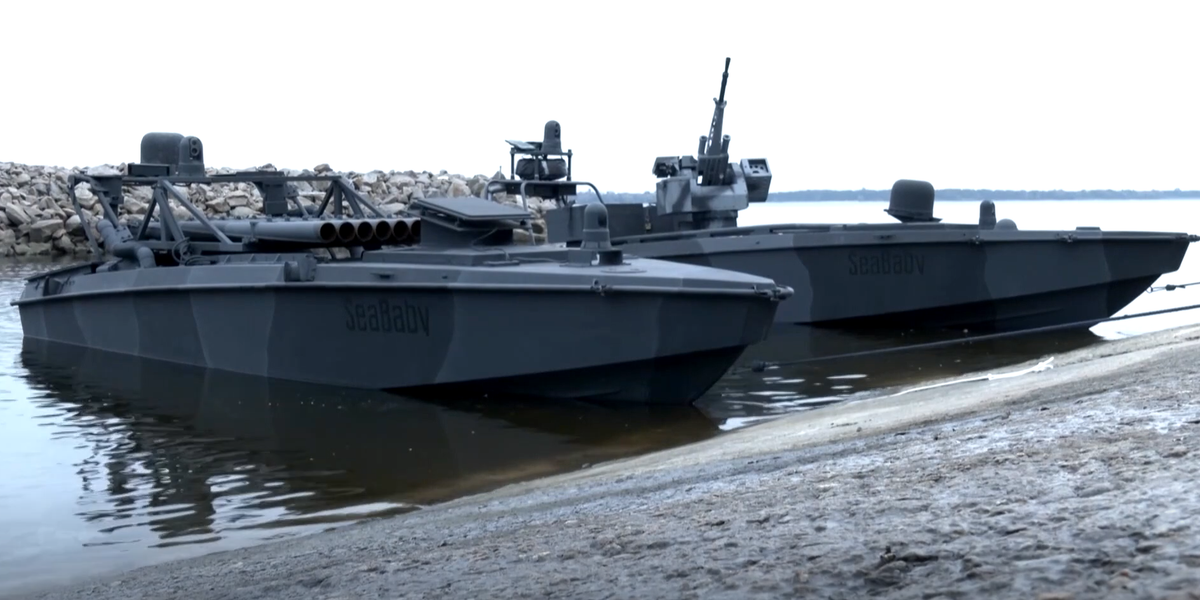 Về tải trọng, tải trọng của mỗi đơn vị mẫu xuồng không người lái Sea Baby mới mang theo đã được tăng từ 1.000 kg lên 2.000 kg, cho phép vận chuyển các bệ phóng tên lửa và súng máy mới - hoặc thay thế bằng các khối thuốc nổ lớn hơn cho các vai trò tấn công quan trọng. Ảnh: @Tình báo Ukraine.