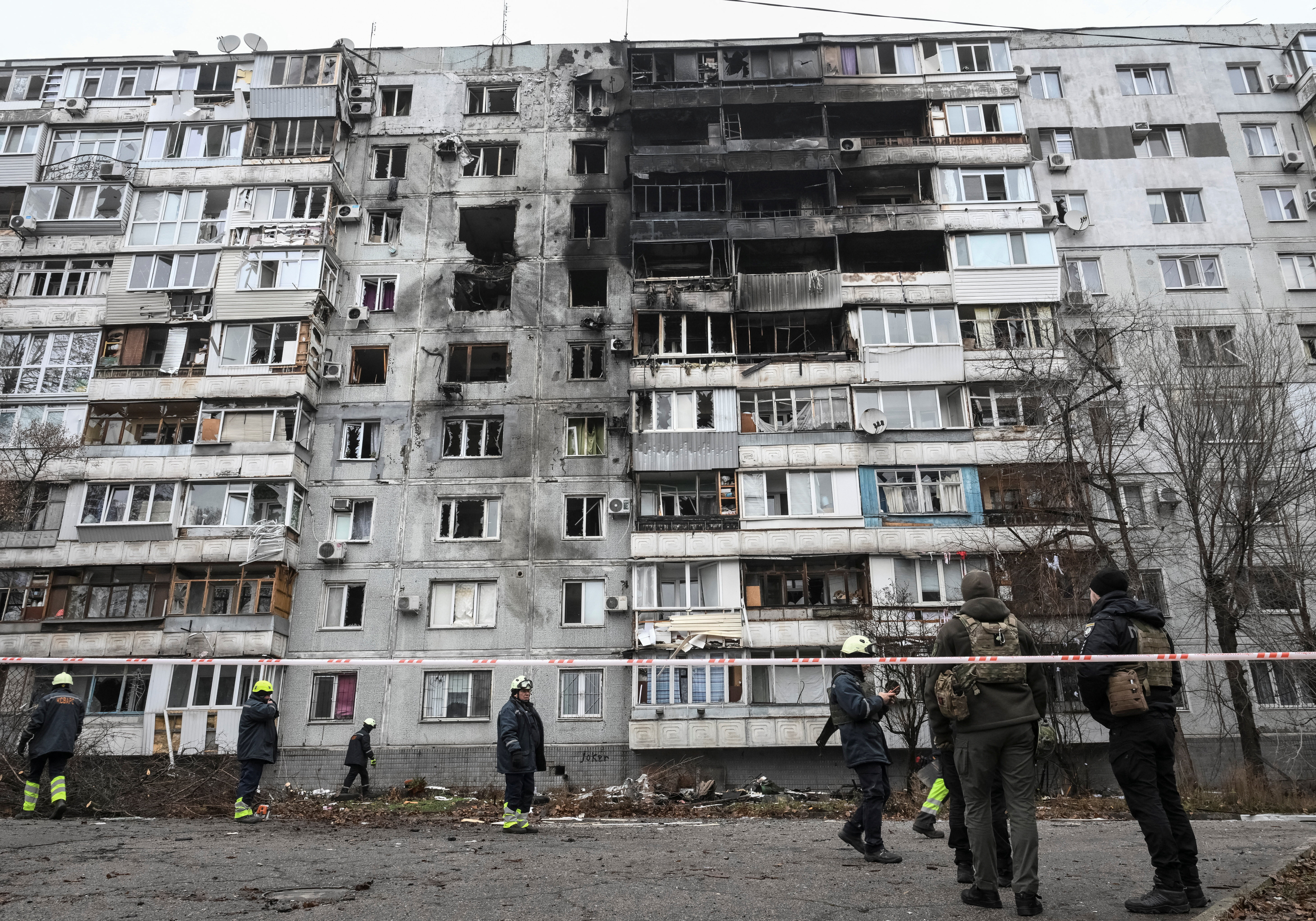 Hiện trường một tòa chung cư bị UAV Nga tấn công, trong bối cảnh các đợt không kích của Nga nhằm vào Ukraine, tại Zaporizhzhia, Ukraine, ngày 16/12/2025. (Ảnh: REUTERS/Stringer)