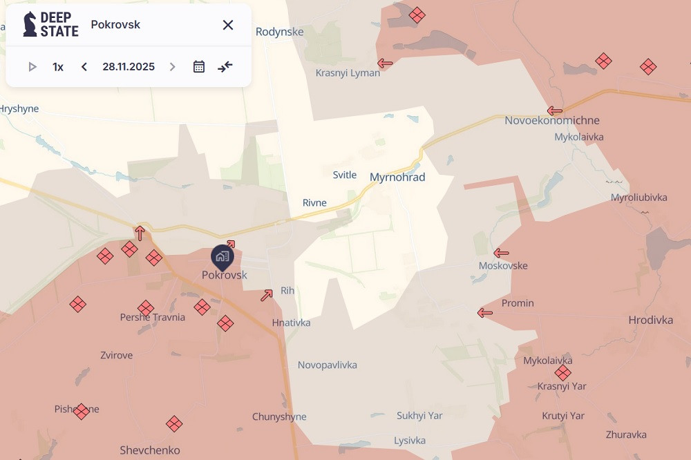 Bản đồ cập nhật tình hình mặt trận Pokrovsk, Ukraine. Ảnh: Deep State