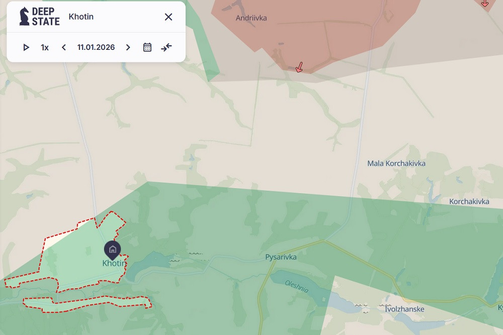 Dựa trên bản đồ do chuyên trang Deep State cung cấp, quân Nga sau khi kiểm soát khu định cư Andriivka ở vùng Sumy đã tổ chức mũi tấn công hướng về làng Khotin. Hiện mũi tấn công của Nga cách làng Khotin chưa đầy 5km.